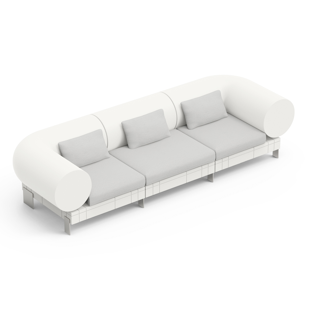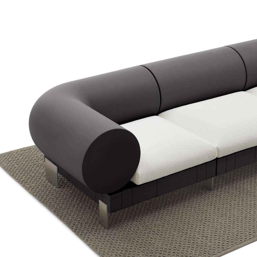This contemporary sofa combines comfort and modern design in an attention-grabbing piece of furniture. Characterized by clean lines and an innovative shape with lateral cylinders, the sofa offers a touch of unique and functional style . Its color palette introduces an element of brightness and freshness into every living space.