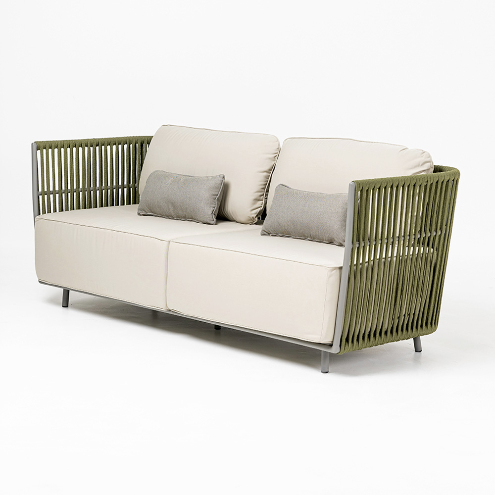 This sofa with large seats is easy to handle and sturdy but at the same time maintains a clean and essential design. Its modern style gives it a strong character making it perfect for furnishing outdoor spaces both in private and contract environments.