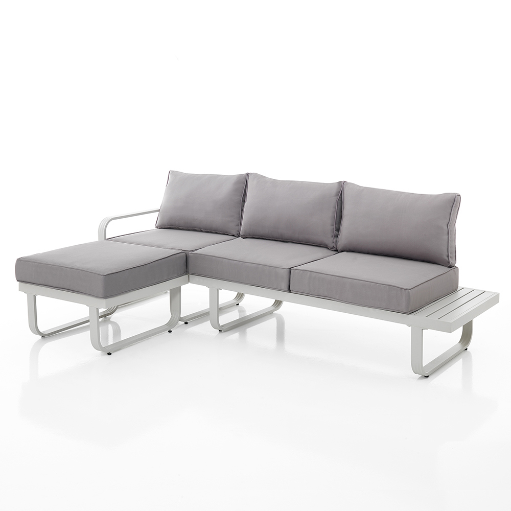 This sofa is the emblem of minimalist comfort for outdoor spaces . Its clean lines and aluminum structure offer a modern and captivating aesthetic that adapts with versatility to both modern gardens and more classic style terraces.