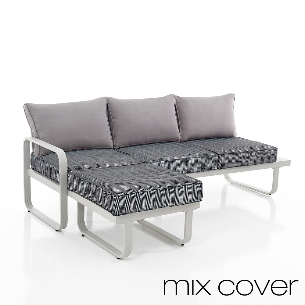 matt ivory white painted aluminum structure and cushions covered in