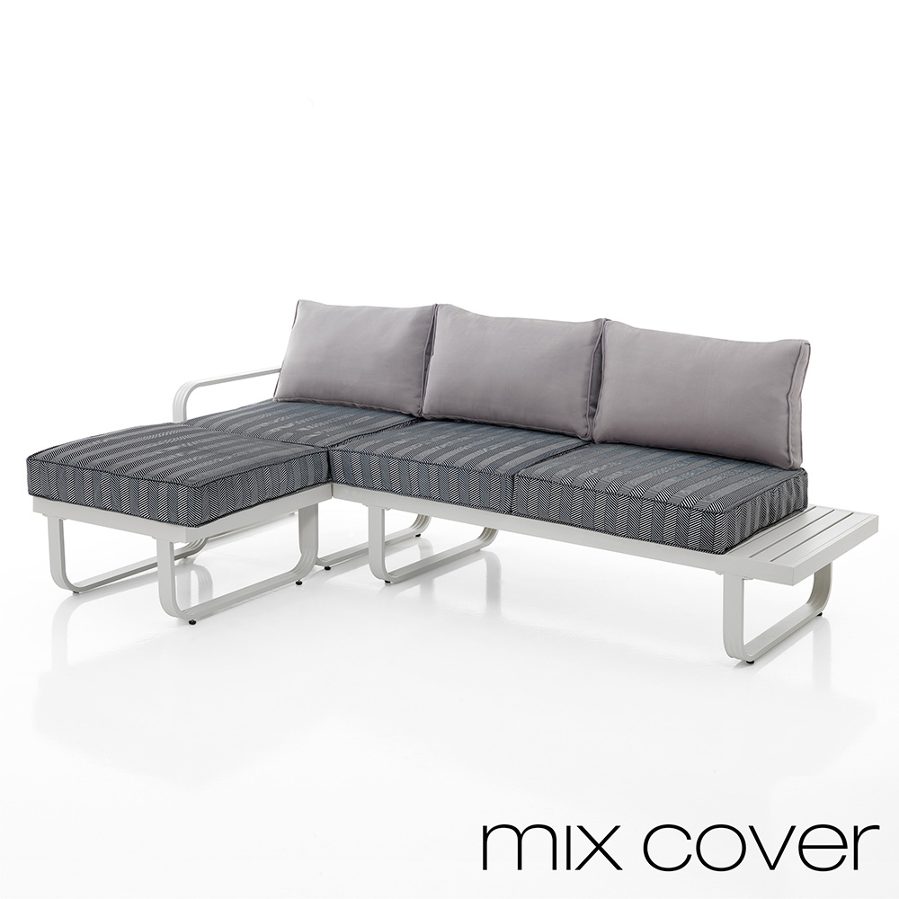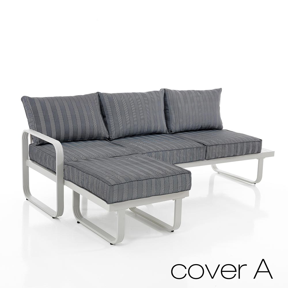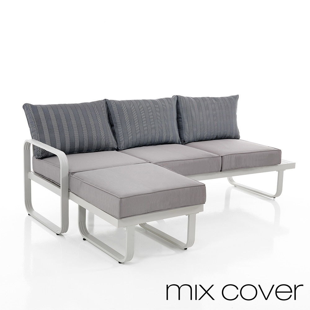 This sofa with pouf for the garden represents the height of functional elegance . Its modern lines, supported by an aluminum structure, exude a contemporary and refined charm. The modularity of the pouf matches perfectly with the sofa, offering the possibility of extending the seating space or using it as a footrest, for unparalleled versatility . High-quality materials ensure durability and easy maintenance , essential for outdoor use. This set is more than just furniture; it is a statement of comfort and style that invites convivial moments, relaxation after a long day or to entertain guests in an atmosphere of hospitality and discreet luxury .