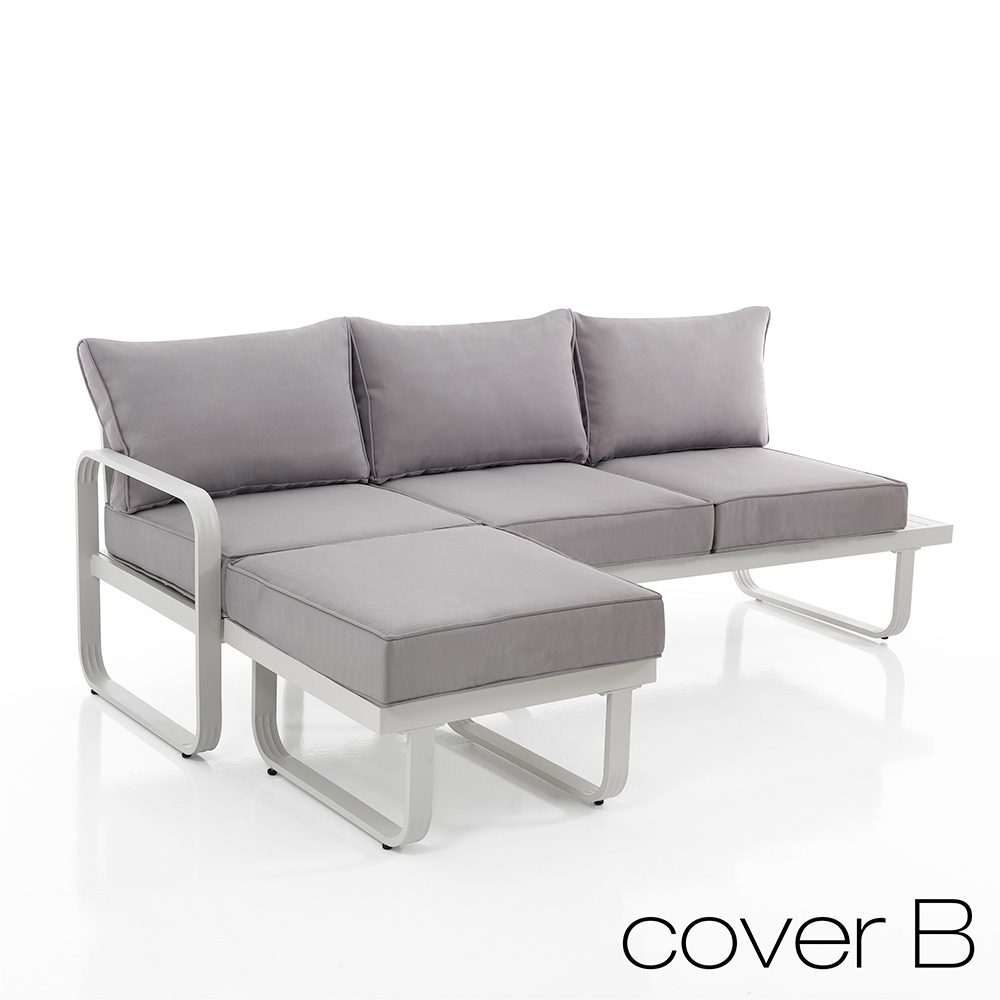 3-seater sofa with aluminum pouf and water-repellent polyester cushions