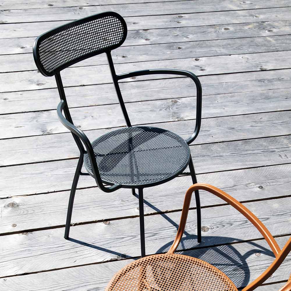 4 Stackable Garden Armchairs with Powder Coated Galvanized Iron Frame Made in Italy