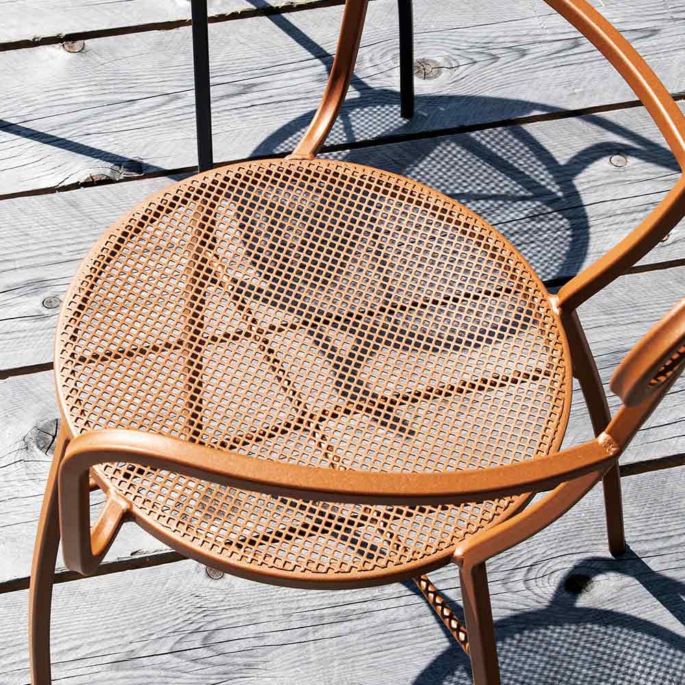 This vibrant collection of powder-coated galvanized iron garden chairs is the epitome of