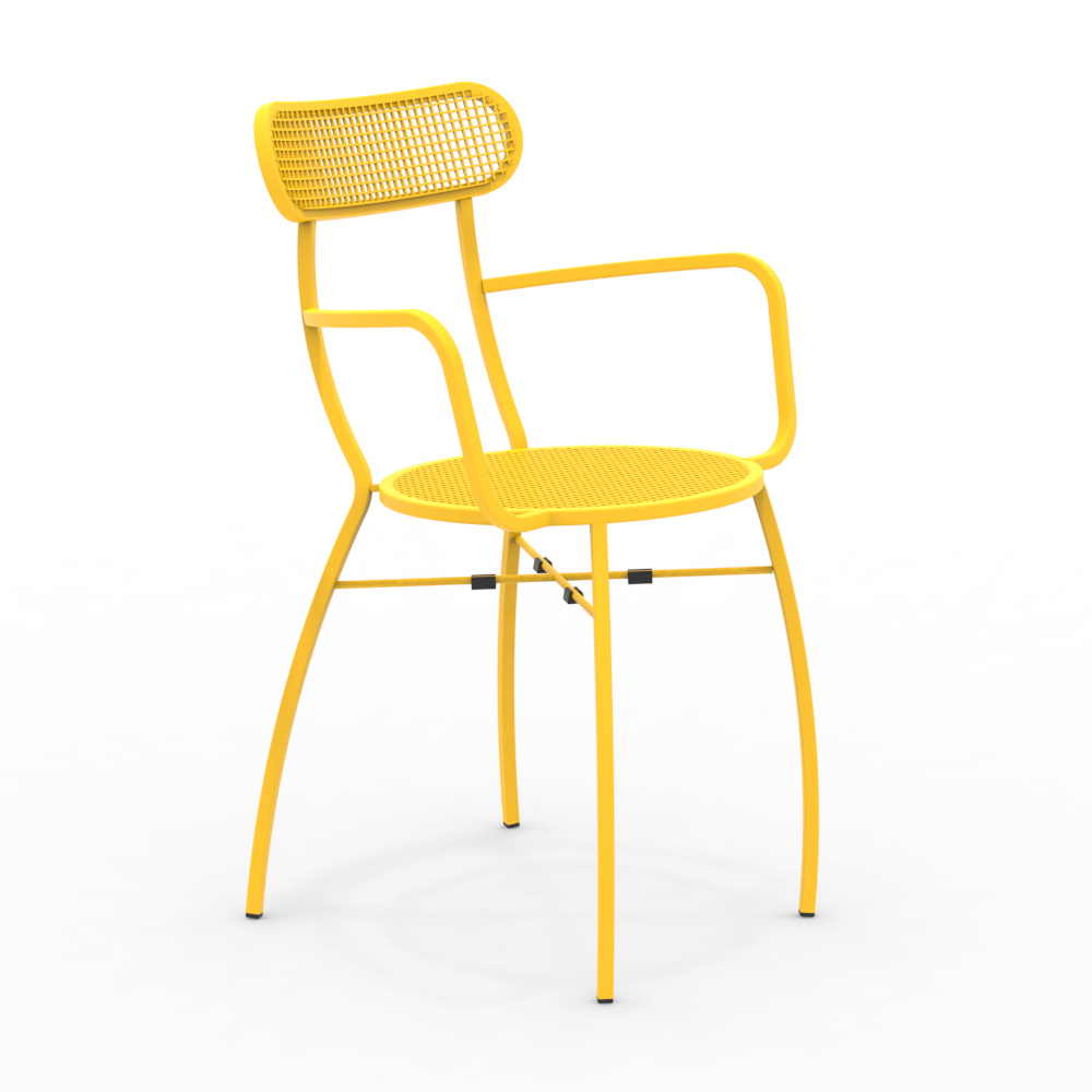 energy and personality . Built to withstand the elements, these chairs combine the durability of powder-coated galvanized iron with an ergonomic design, ensuring