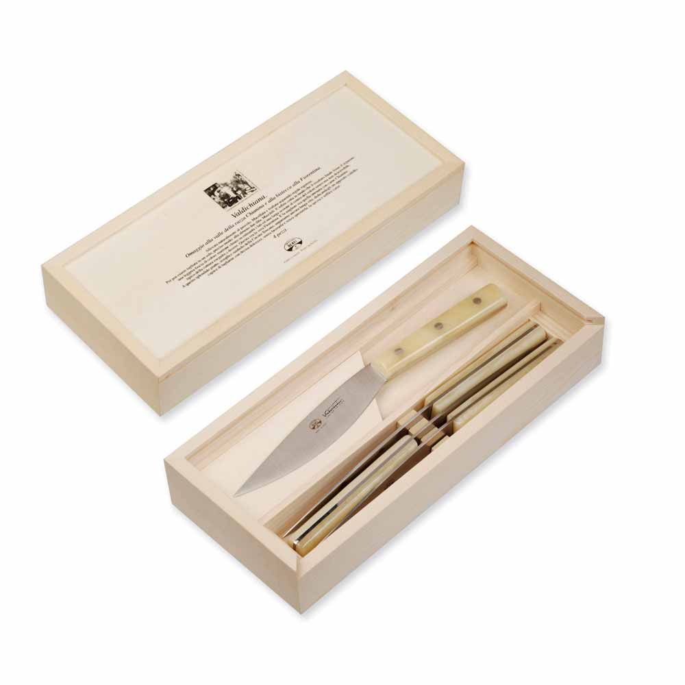 The versions with Plexiglas handles are dishwasher safe because all our Plexiglas handles undergo a special stabilization process which makes them dishwasher safe. Produced with high quality cutting steel, they can be put in the dishwasher only in the Plexiglas handle version, but it is good to be informed about the possible consequences: