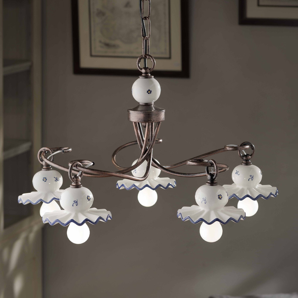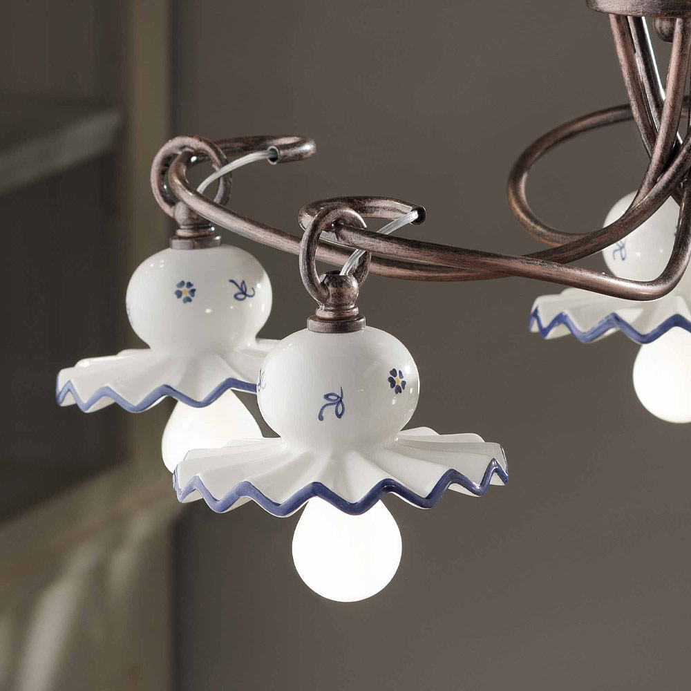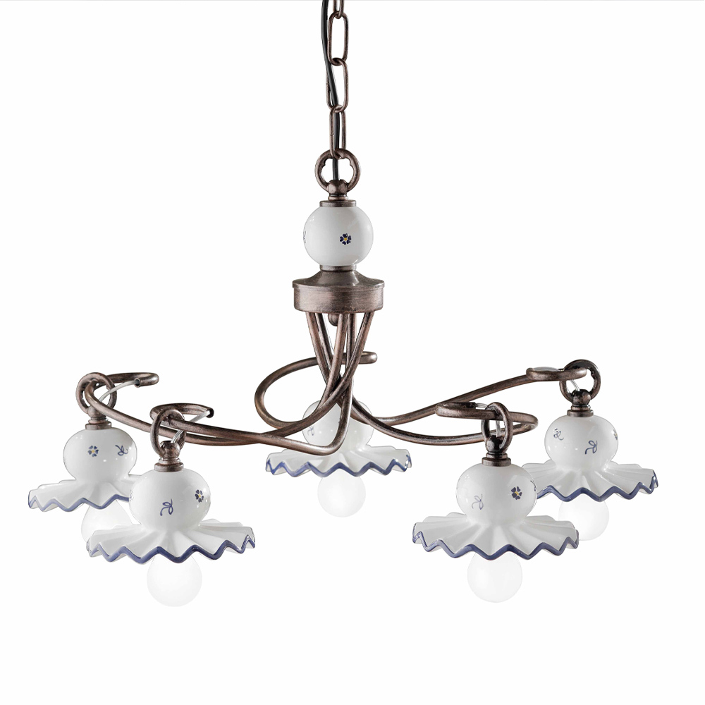 This 5-light chandelier is entirely handcrafted in metal and ceramic with hand-painted decoration, Ā to highlight the skill and manual skills of the artisans.