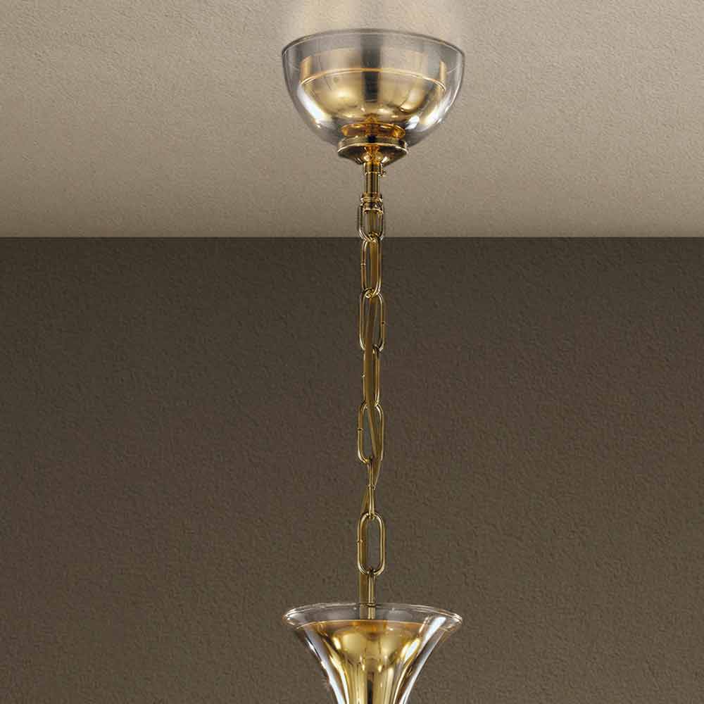 A 100% Made in Italy production that has its roots in the authentic tradition of Venice , a city with a strong history of ten years and a source of inspiration for glass processing . Each element, finely worked by skilled artisans expert in the sector , tells of ancient techniques handed down over the years that have brought the true essence of glass to this day, telling through the light its values of experience , authenticity and propensity for beauty . The impulse to offer furnishing solutions that respect tradition blends with the desire to create something innovative to offer classic accessories complete with cutting-edge technologies to furnish your rooms with style, recalling the past. What is born is a furnishing proposal that seems to be forged by light, designed to decorate contemporary environments with all the class and elegance with which it illuminated the large halls of ancient buildings .