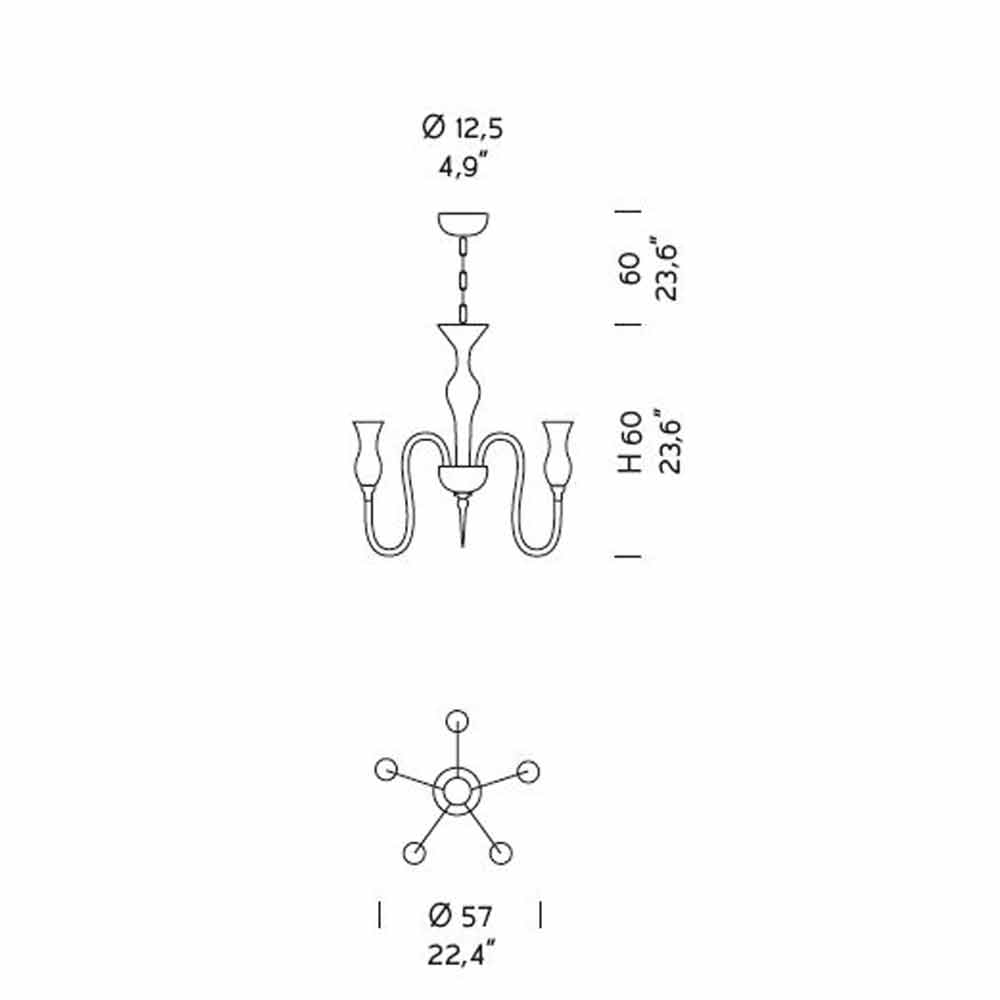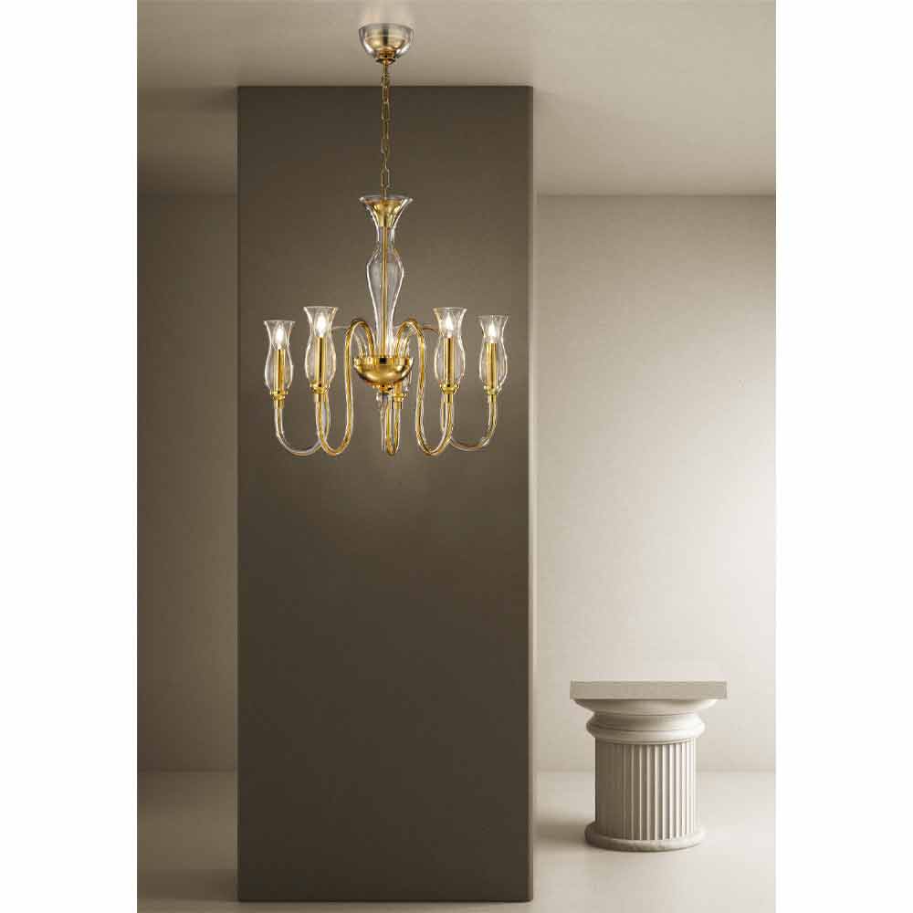 5-light chandelier handmade in Italy in Venetian glass and metal.