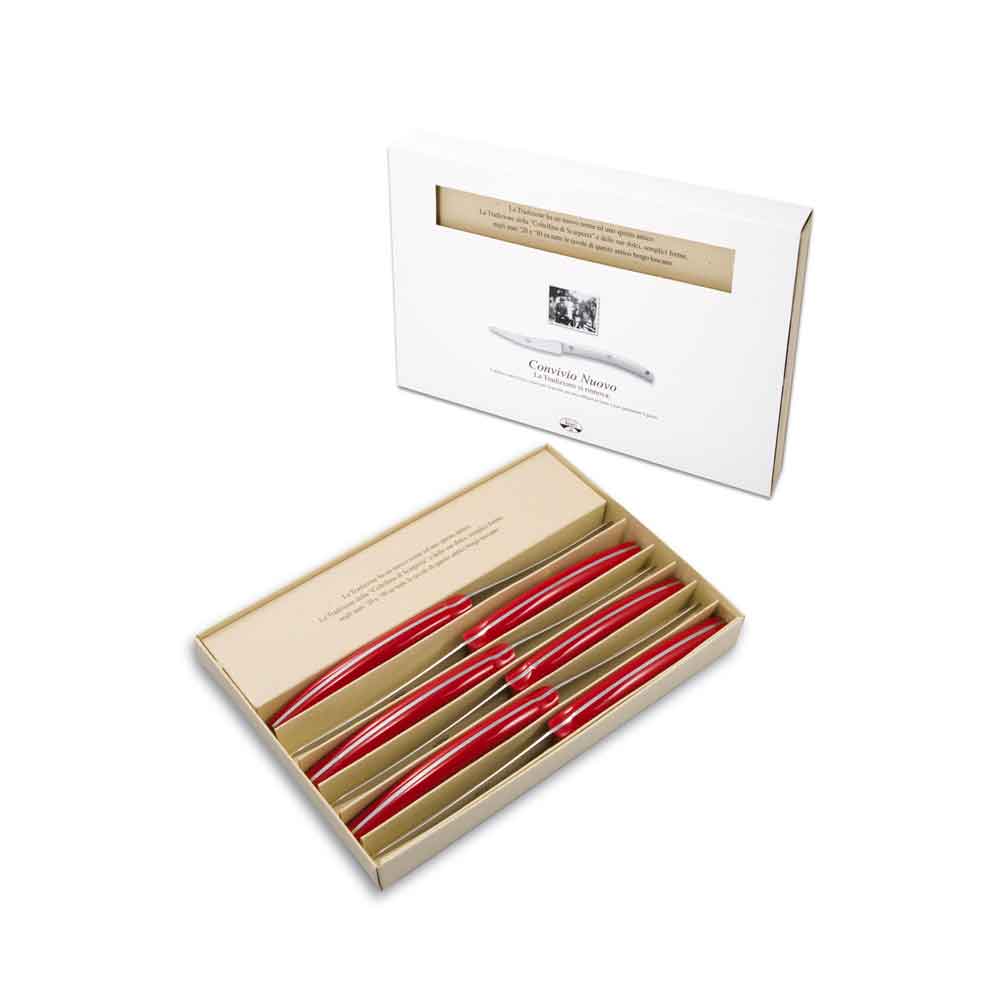 Table knife : often the most neglected in the choice must be strictly smooth in order not to weaken the meat and not to squeeze the taste, as happens with serrated blades. To savor dishes in their full flavor, with a sweet and precise cut. You won't have to throw it away once it has lost its edge, as with serrated blades, which cannot be sharpened.