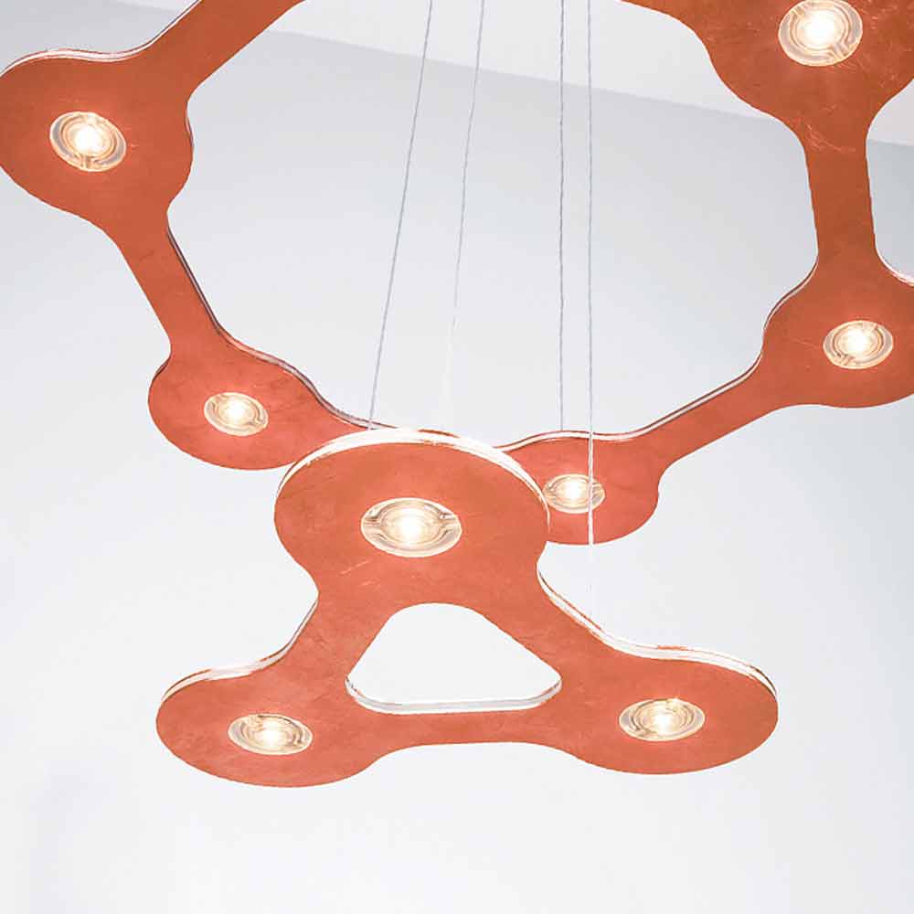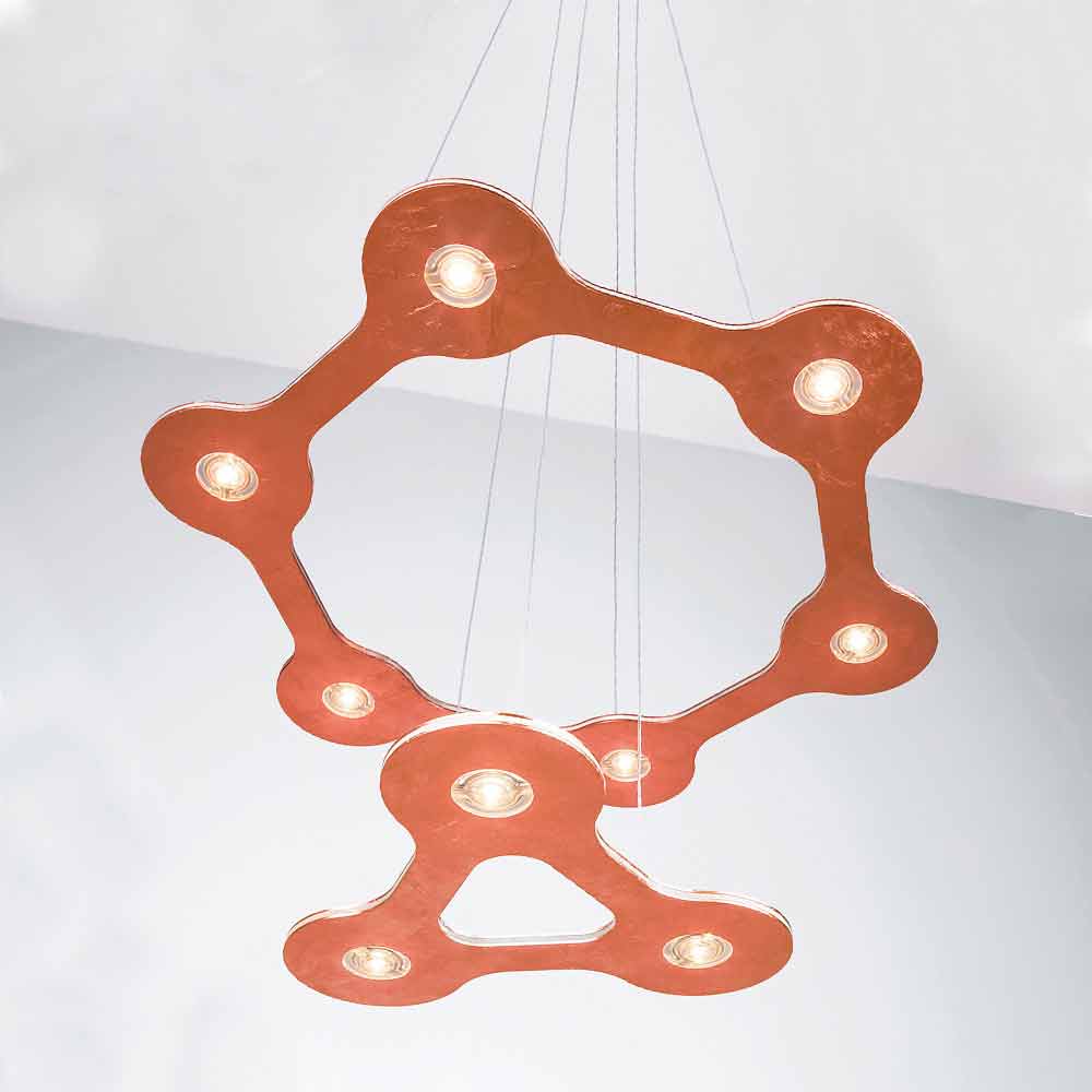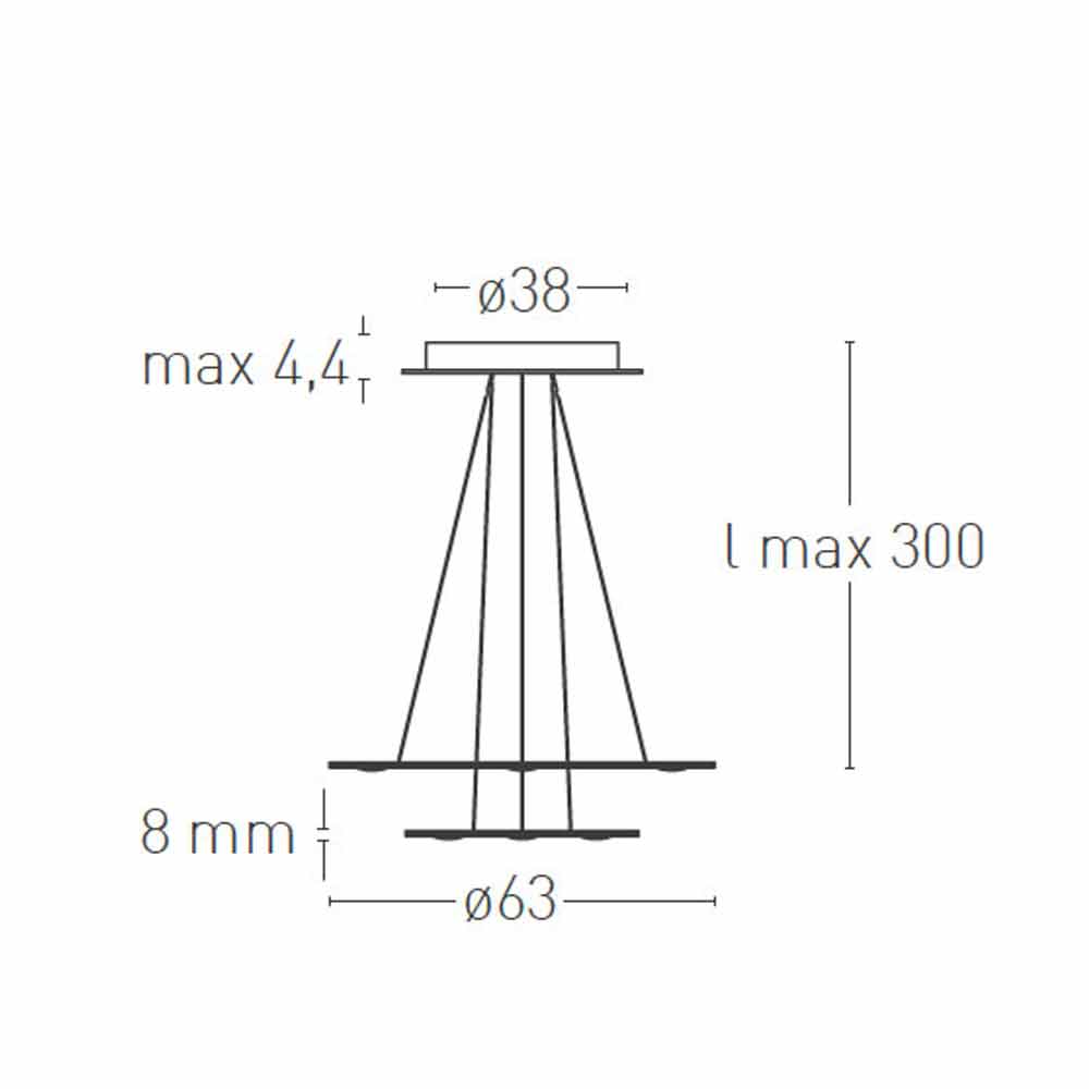 9 lights chandelier made in Italy with aluminum and methacrylate structure and polycarbonate diffusers complete with 300 cm transparent cable and dimmable electronic power supply included (dimmer not included). A lighting system that minimizes the surface and volume of the chandelier body to gain significant advantages in terms of space optimization and lightness. The innovative and functional LED source used provides direct downward light while the methacrylate level allows it to be diffused softly throughout the environment for an optimal result . Its multi-level structure represents the true peculiarity of this eccentric and original chandelier designed to give a quality light source to large spaces such as dining rooms, kitchens or living areas with a contemporary aesthetic in which it is necessary to complete the style with a unique and refined touch .