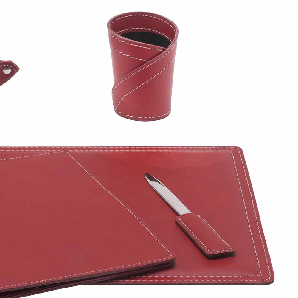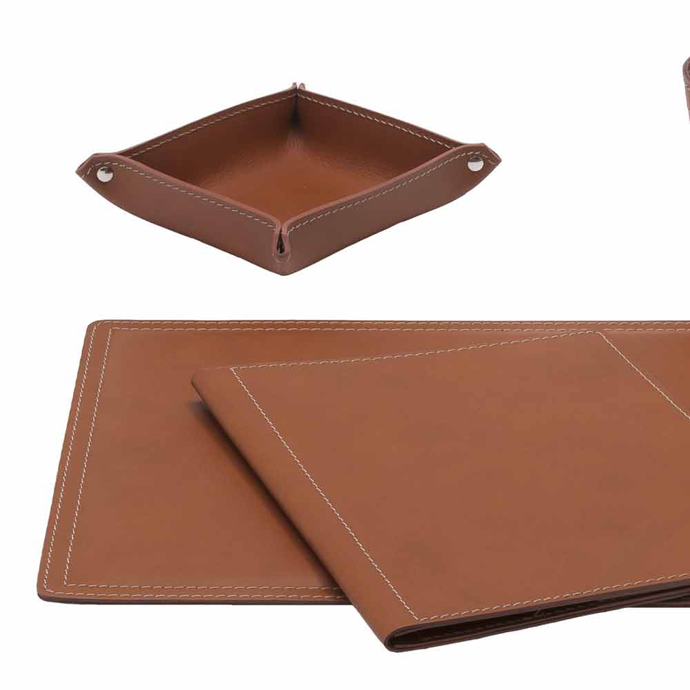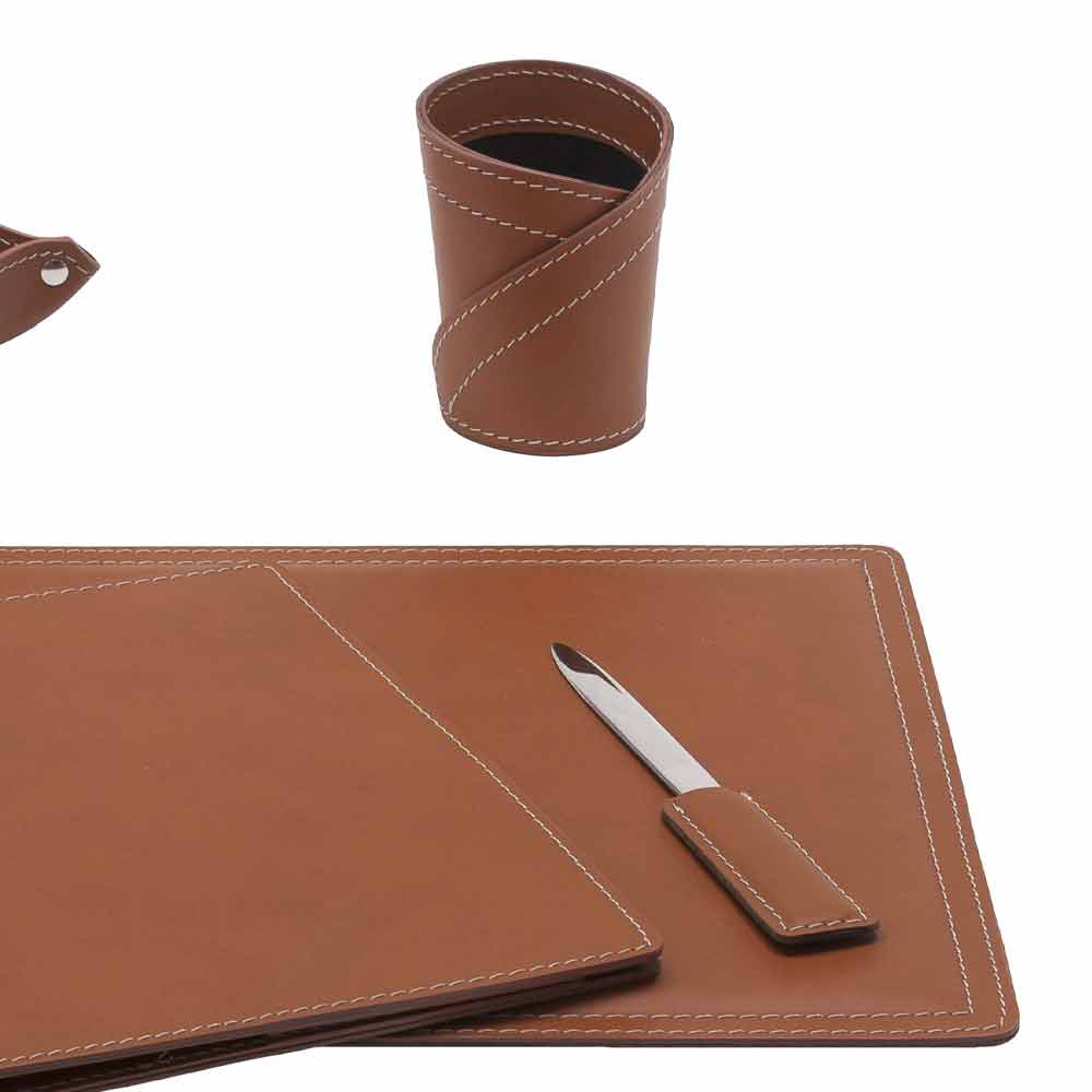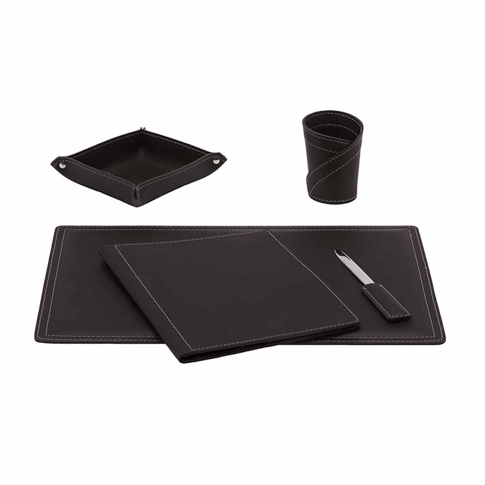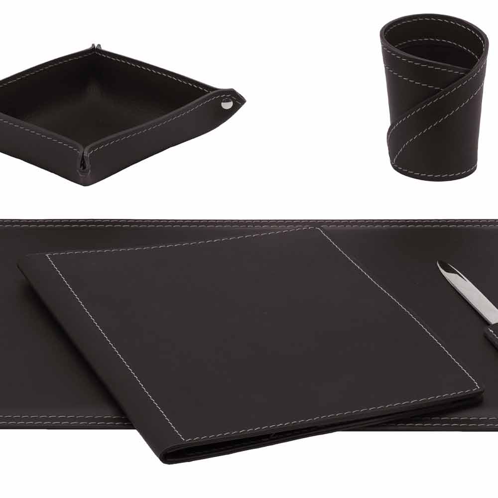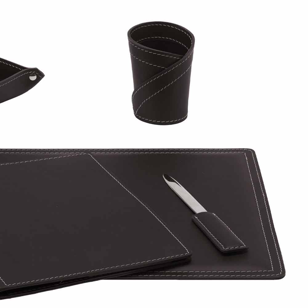 Desk accessories in regenerated leather composed of 5 pieces Made in Italy Ascanio