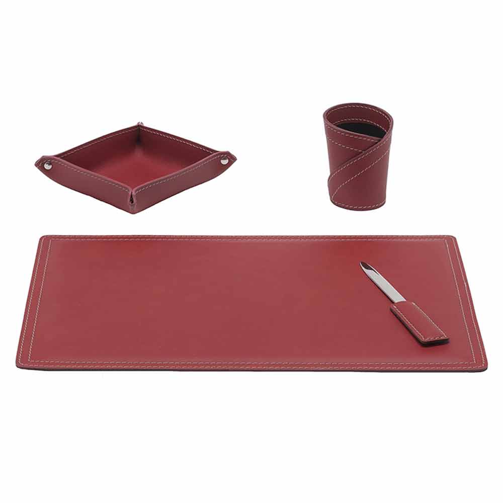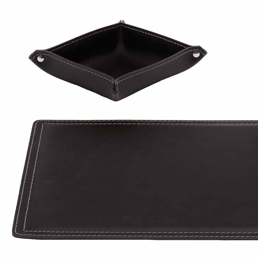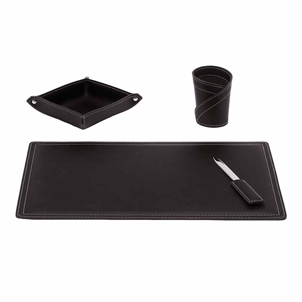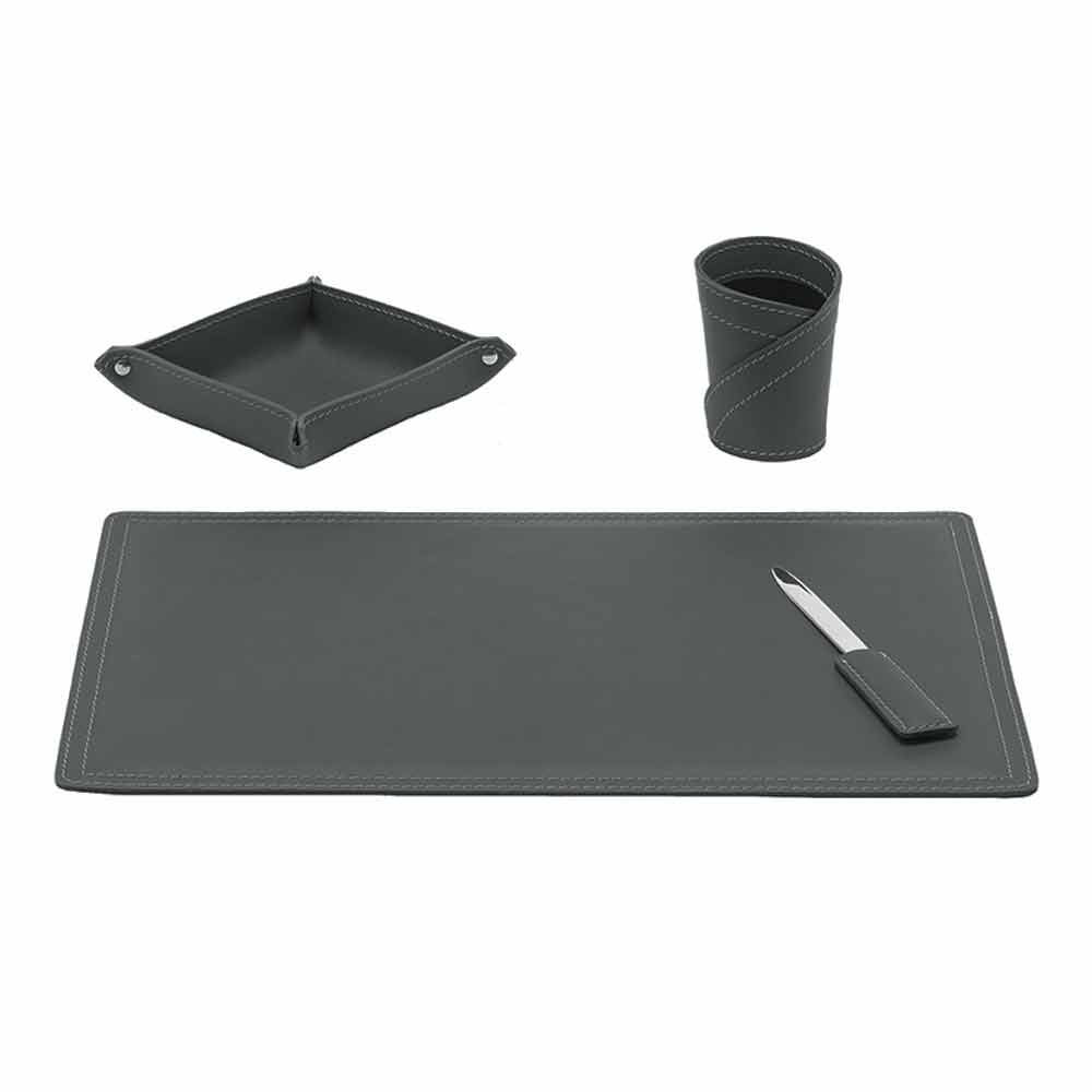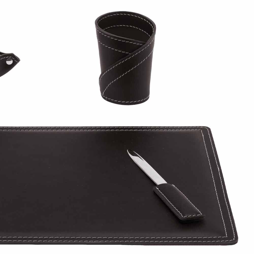 Set of accessories for desk in regenerated leather consisting of 4 Made in Italy Ascanio accessories
