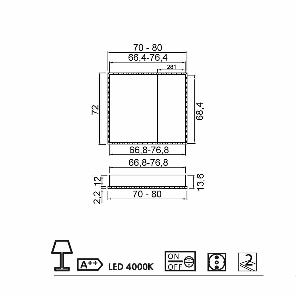 Adele mirror cabinet with 2 doors and LED light, modern design.