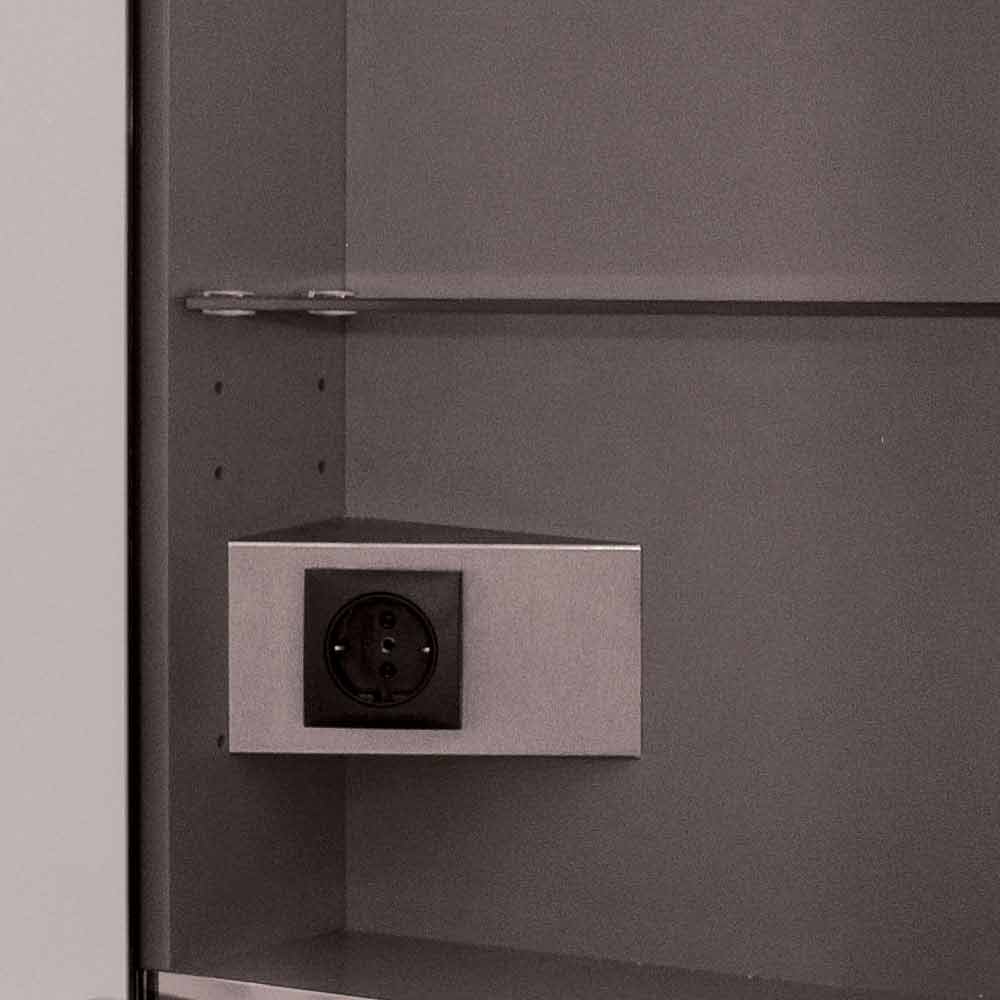 The cabinet frame is made of Fenix, a polymeric material treated using nanotechnological techniques, which makes the surface waterproof, stain repellent and with a soft-touch effect.