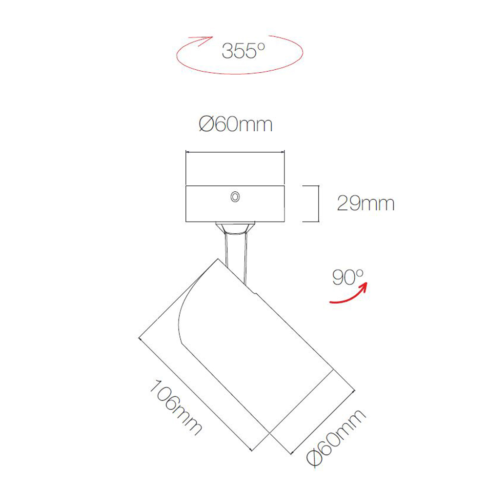white or black aluminum with 90 ° adjustable and 355 ° adjustable structure. A particularly versatile small projector that is