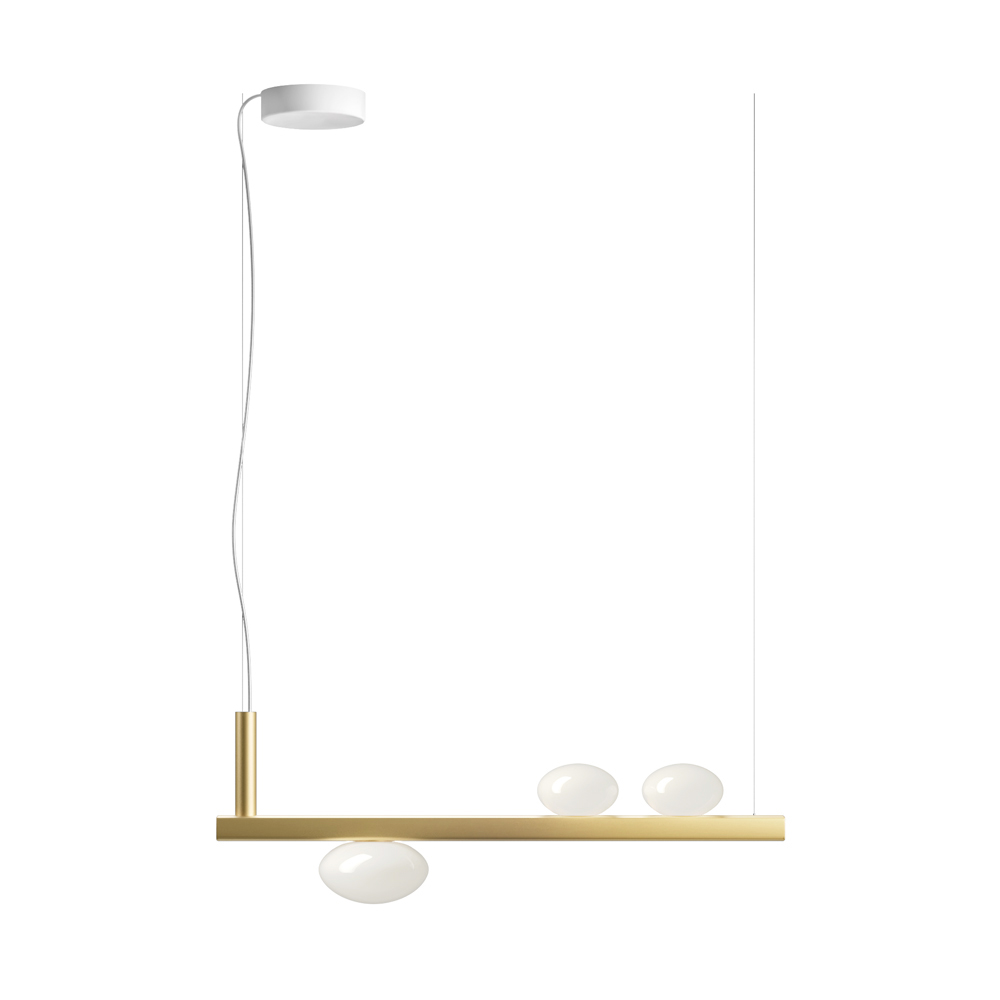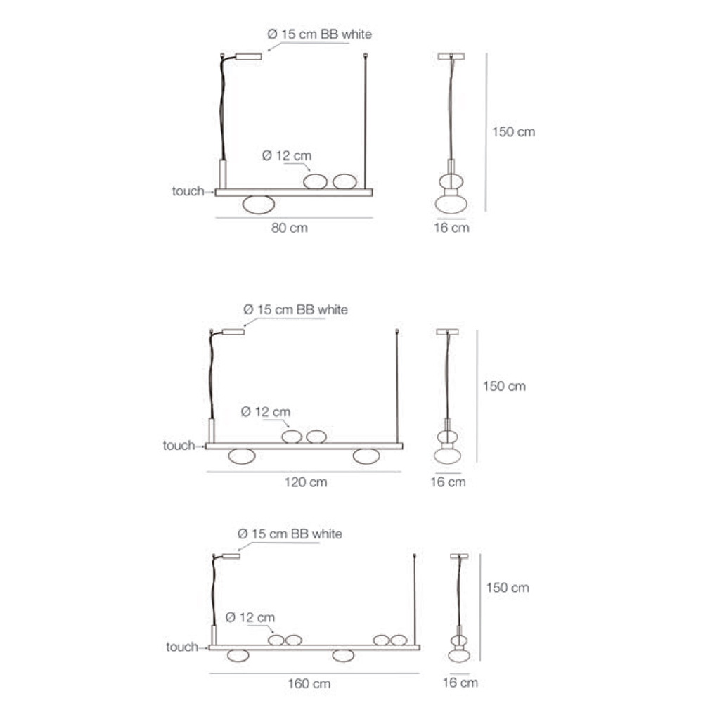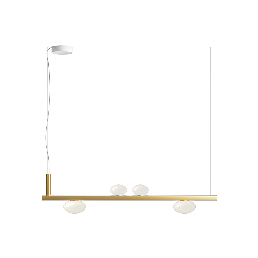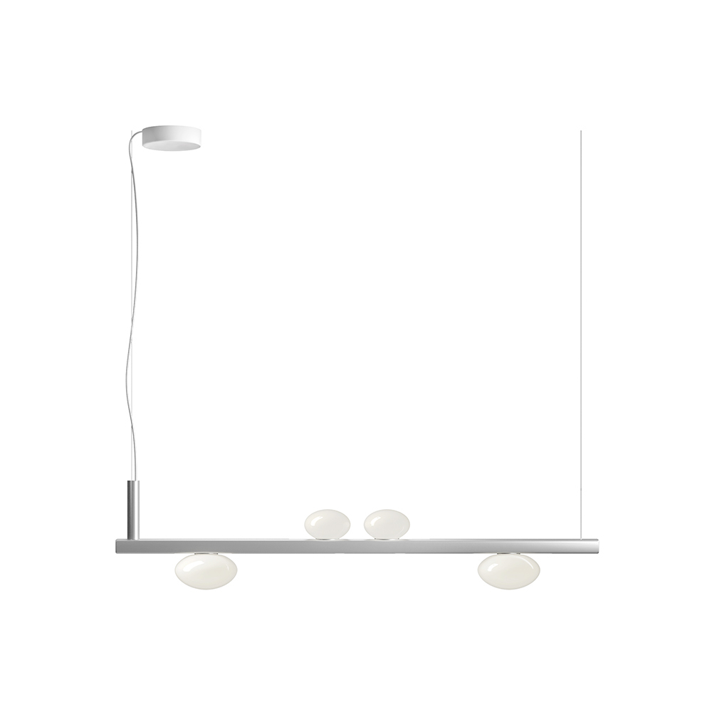 This pendant lamp is a true icon of intelligent design and discreet technology . Its clean, linear structure is paired with elegant spherical opal glass diffusers, which appear to be suspended in balance, creating a modern and light visual effect.