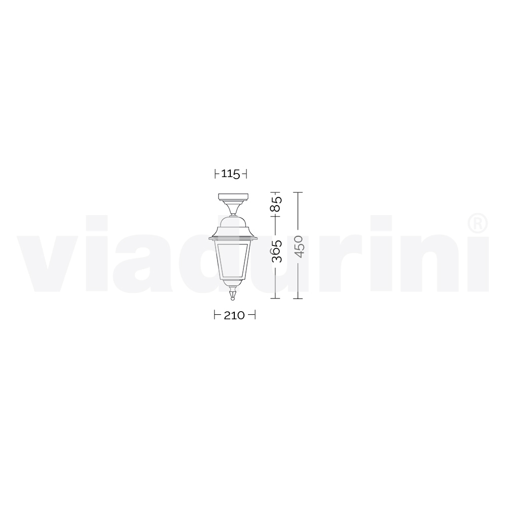 Aquilina is an outdoor ceiling light handmade in Italy with high quality material: die-cast aluminum structure and glass diffuser available: transparent or sandblasted.