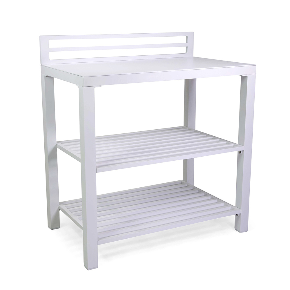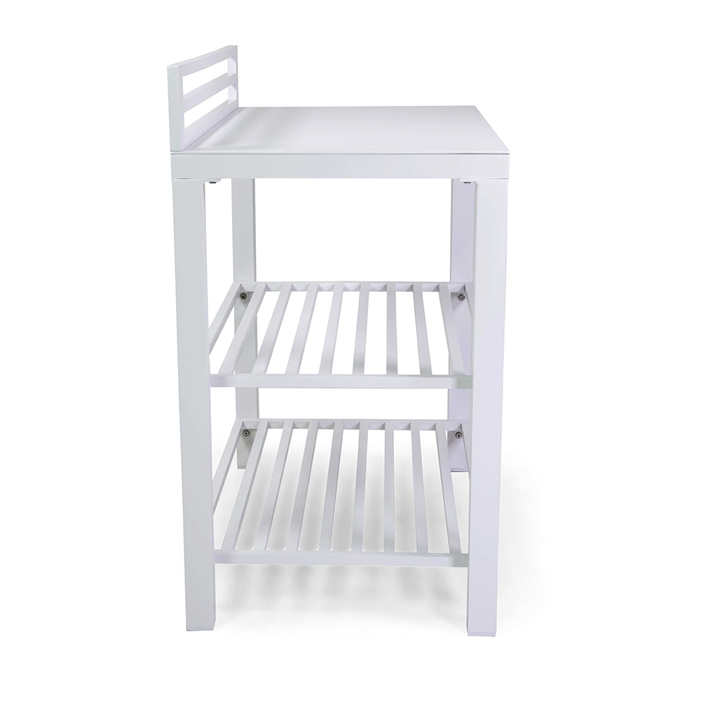 This multipurpose aluminum cabinet , with a clean and modern design, is the ideal solution for organizing and enriching any outdoor space. With its white finish, it fits perfectly with various styles of decor , from ultra-modern to classic. The sturdy aluminum structure ensures durability and stability, effectively resisting outdoor elements. Equipped with large shelves , it offers generous space for plants, decorations, or as a service station during your evenings outdoors. The minimalist lines and aerodynamic appearance make this cabinet an elegant and functional addition to terraces, gardens or balconies.
