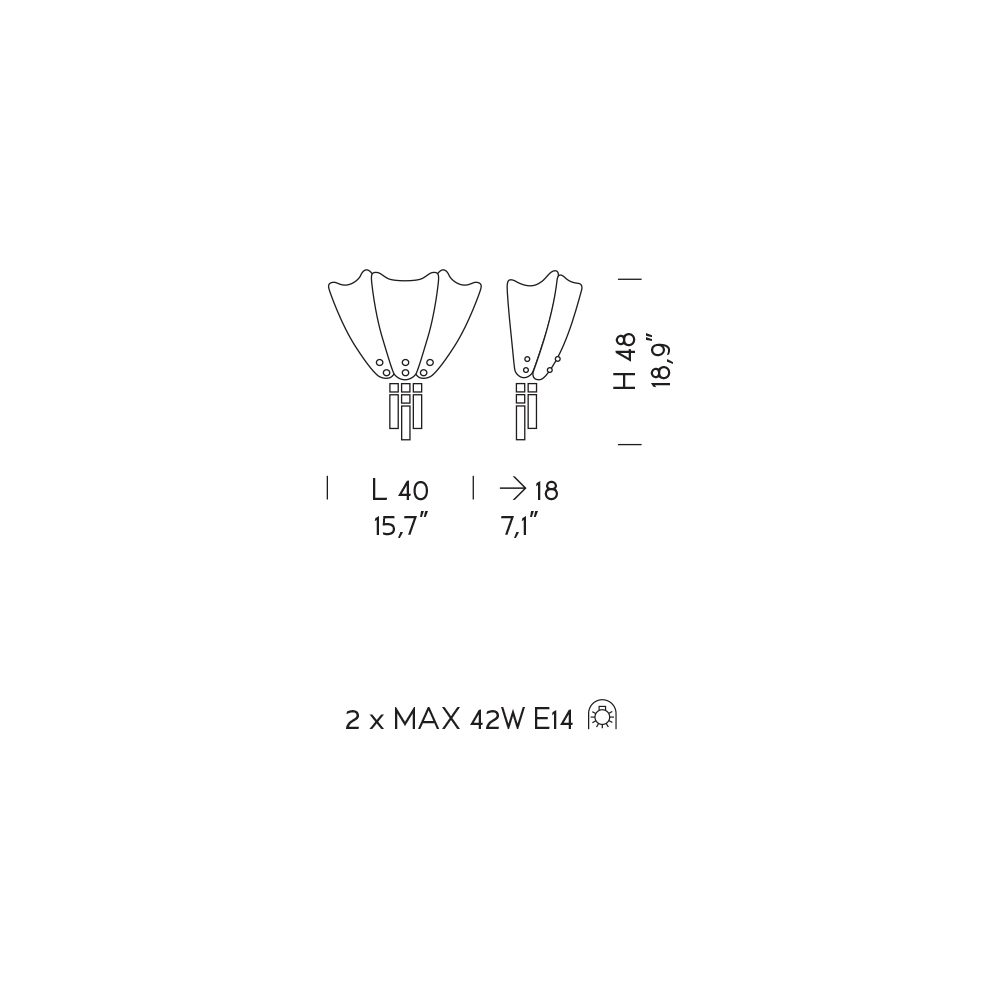Bulbs (not included) : 2 x MAX 42W E14