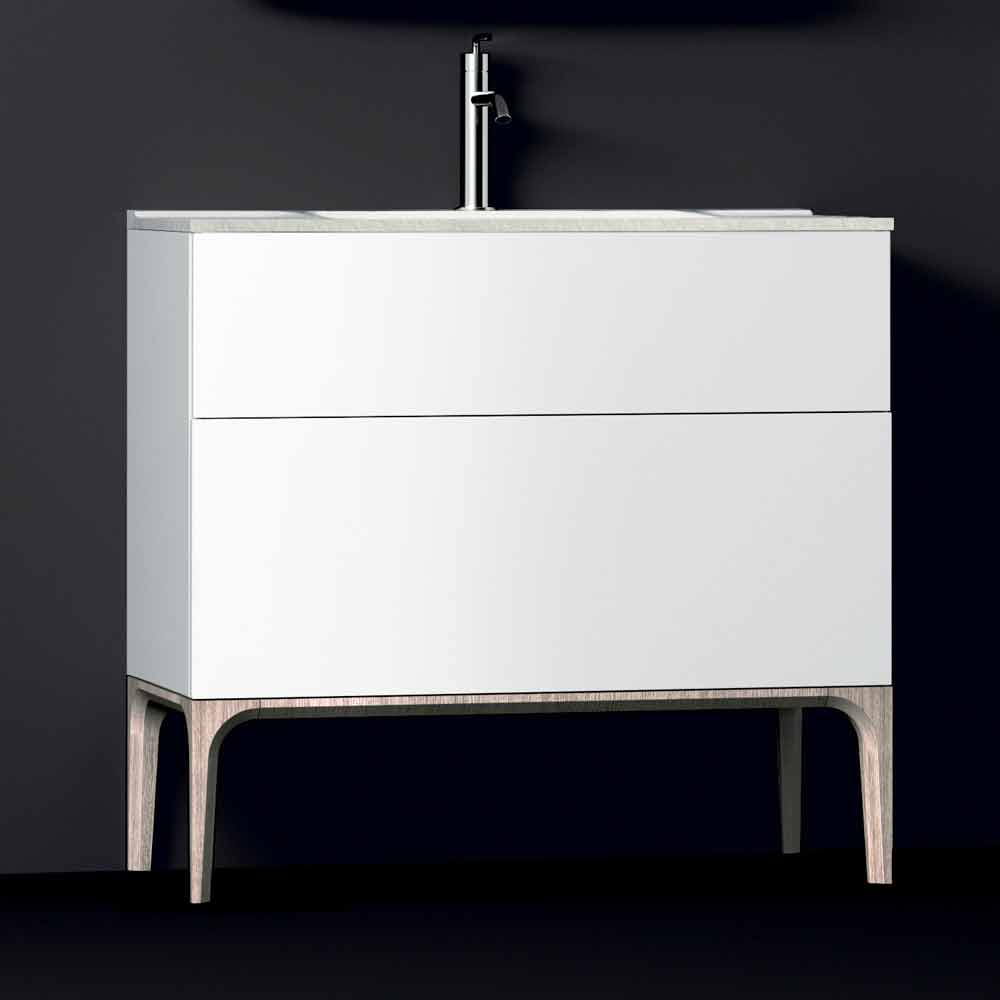 This bathroom vanity expresses elegance, modernity and tradition at the same time, thanks to its solid wood feet and its multifaceted surfaces.