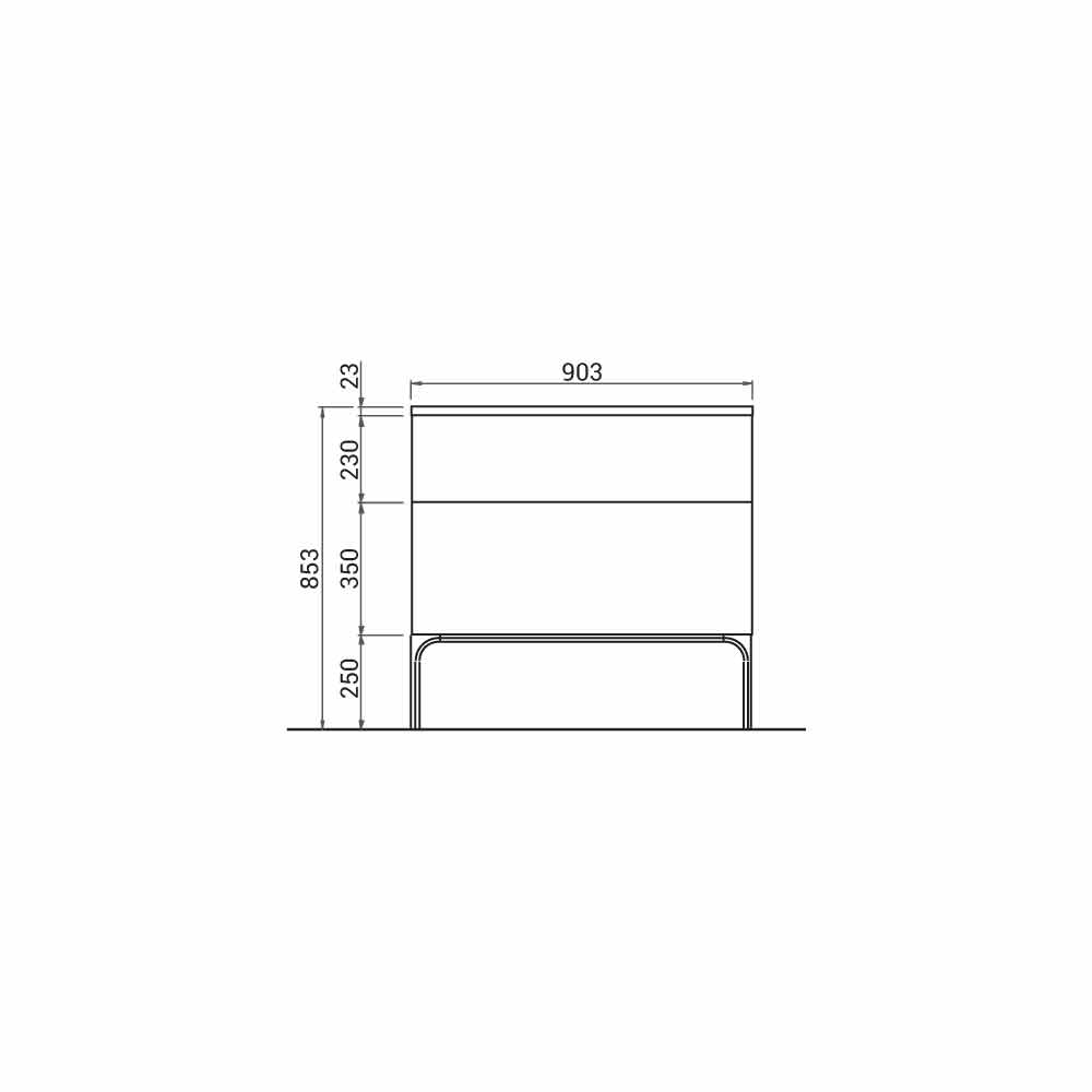 Elegant vanity with 2 drawers made of lacquered wood. With solid oak feet.