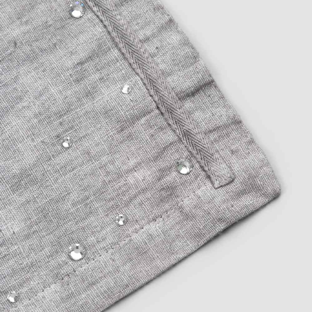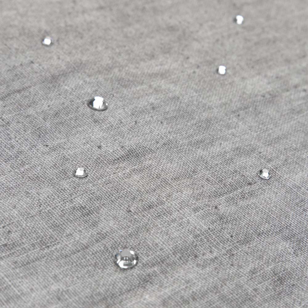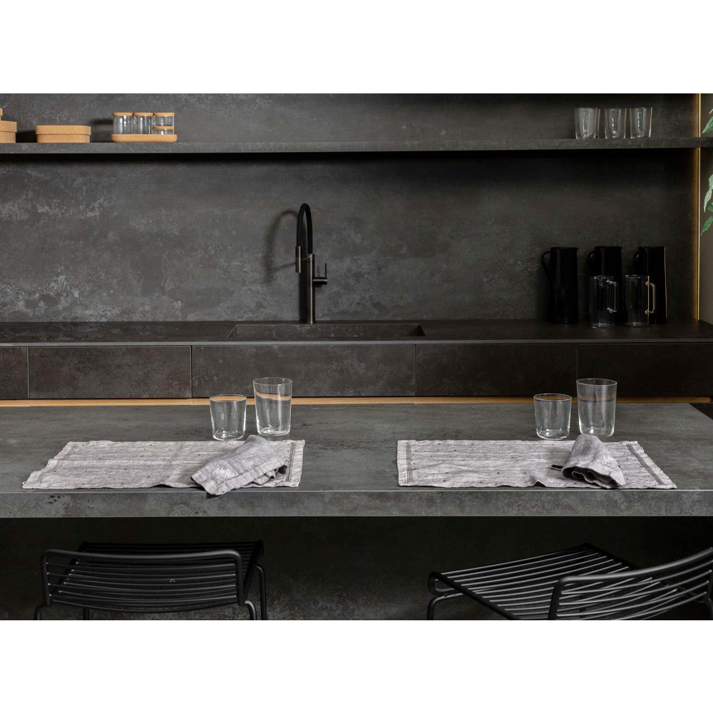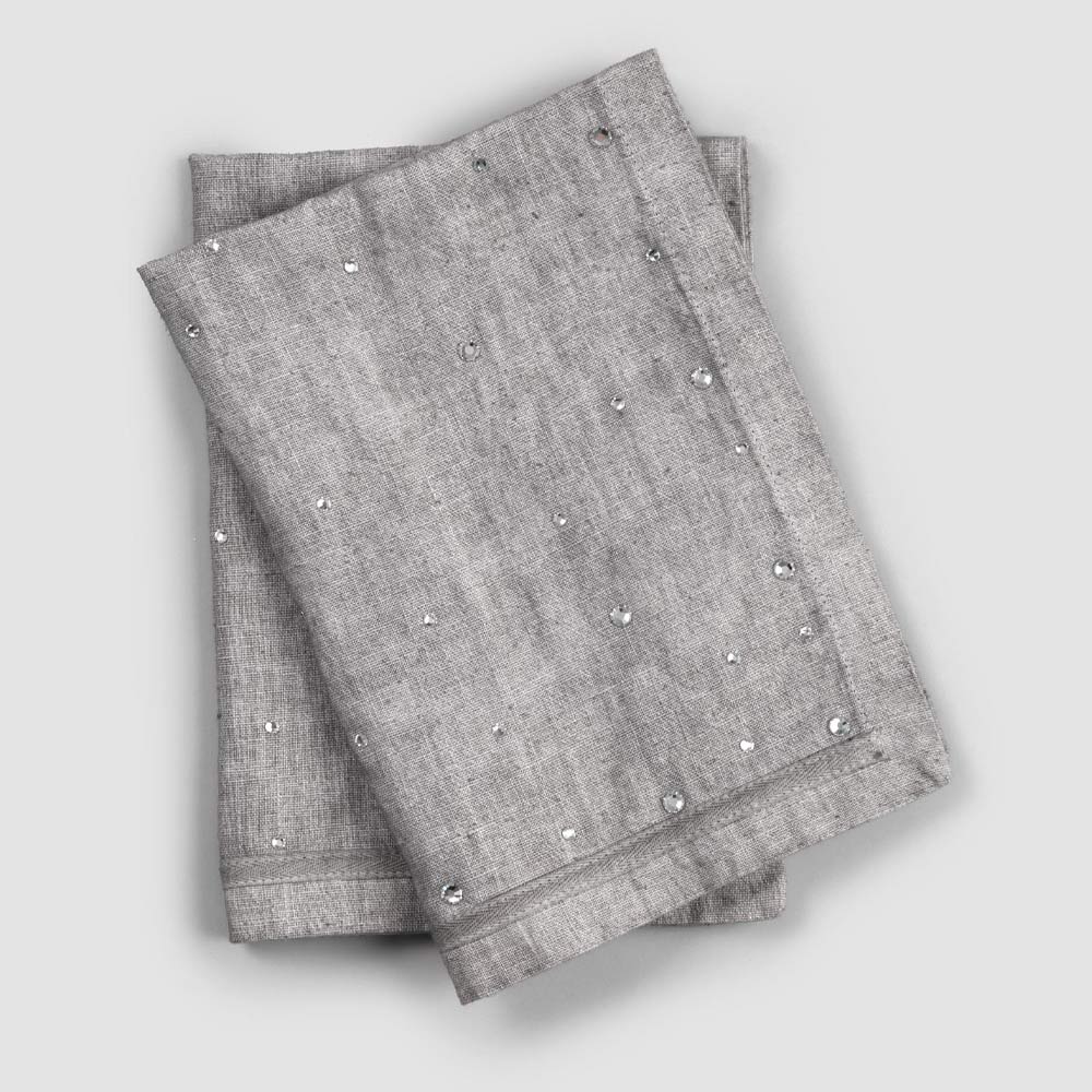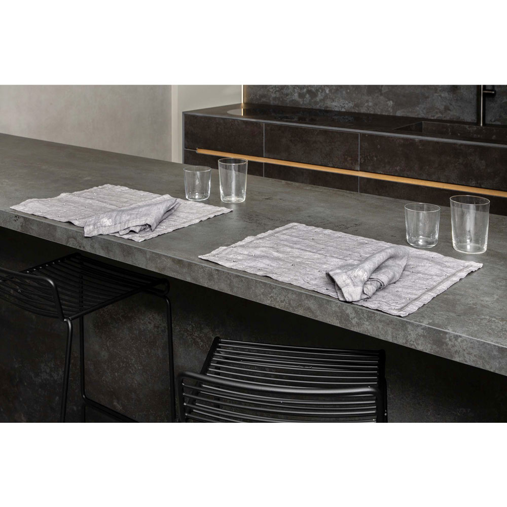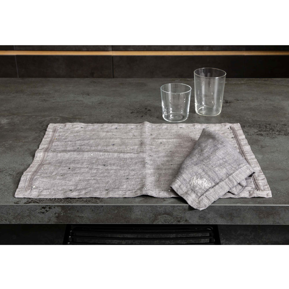 The value of tradition joins the modern lifestyle with these American placemats in anthracite gray linen embellished with crystals and folded edge.