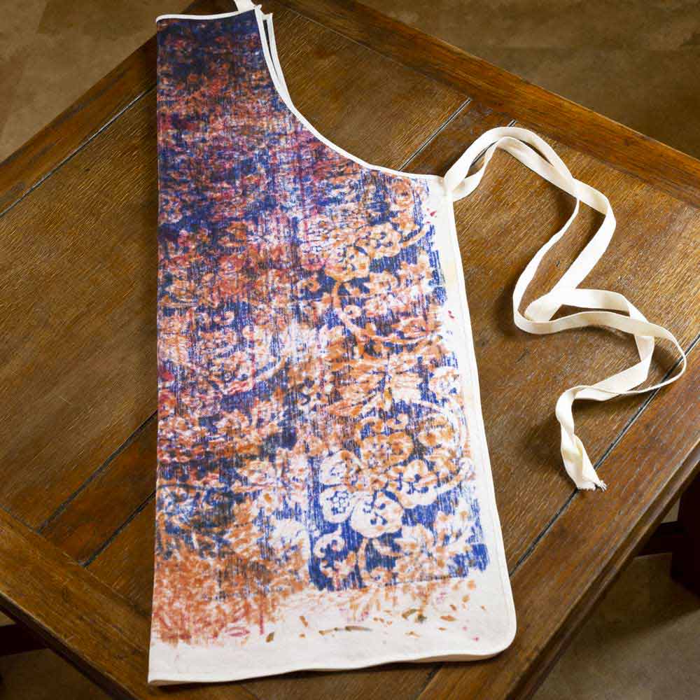 Artistic kitchen apron with bib in pure cotton handcrafted with colored motifs printed by hand, a unique piece of quality made in Italy.