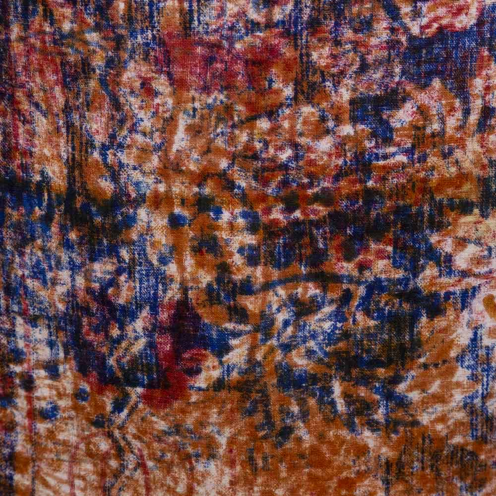 6. Hand print: This phase lasts for months. The fabric is placed on the workbench below the various products that in months and months of work will alternate and be printed. The various colors and designs will be transferred "spontaneously" to this fabric due to the pressure of the wooden mold, and will overlap. The end result will be an explosion of unpredictable and unrepeatable colors and shades.