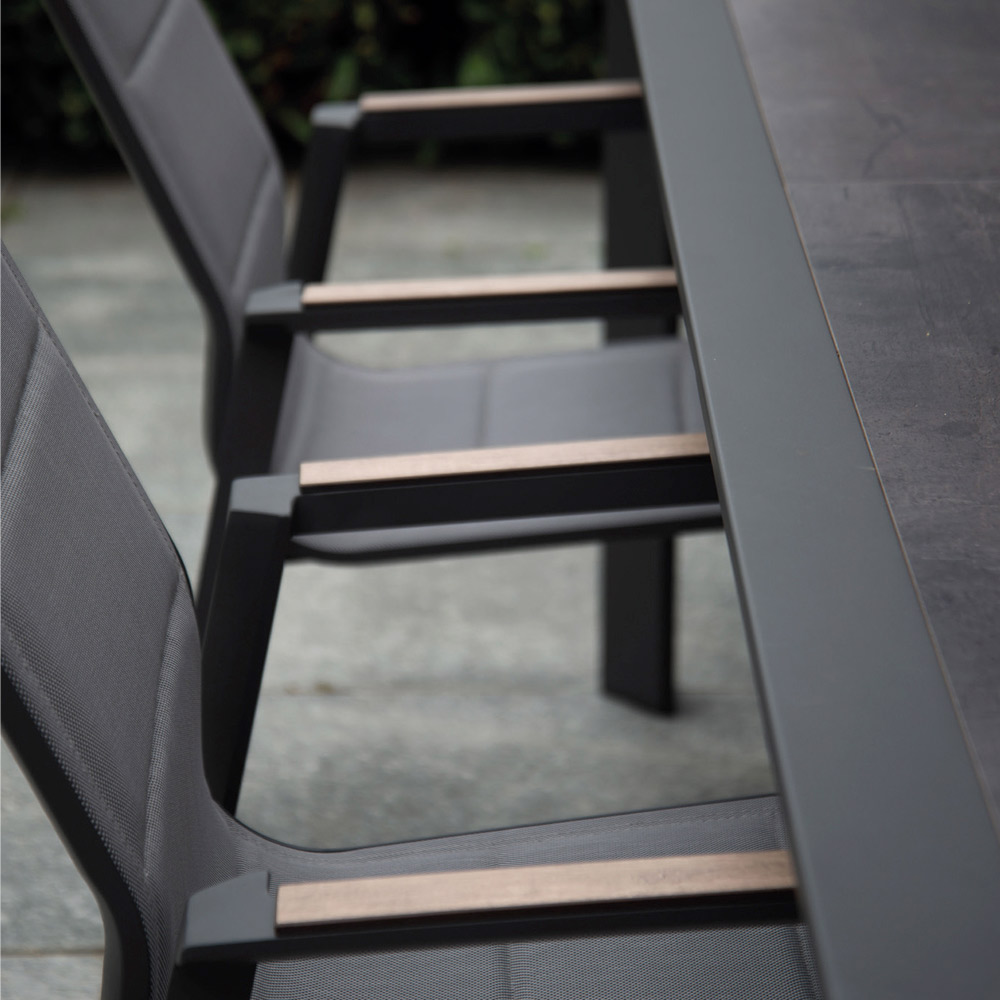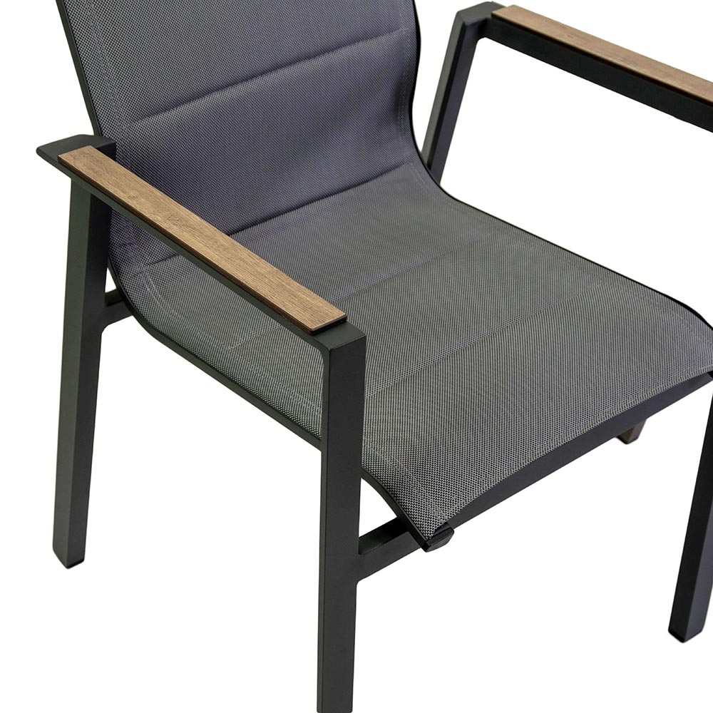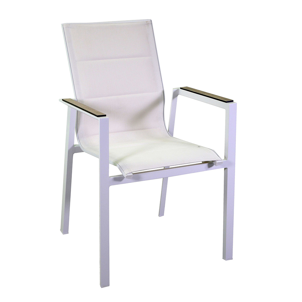 This aluminum armchair with textilene upholstery is ideal for those looking for comfort and style in their outdoor space. The painted aluminum structure offers a clean and modern design that perfectly matches any decoration. The armrests , enriched with HPL inserts, add a touch of elegance and are extremely practical for support. Textilene, known for its resistance and ease of maintenance, ensures a comfortable and long-lasting seat, ideal for enjoying hours of relaxation outdoors.