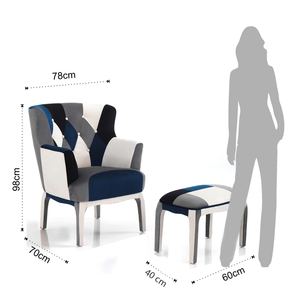 Armchair with Pouf in Patchwork Fabric - Bromo