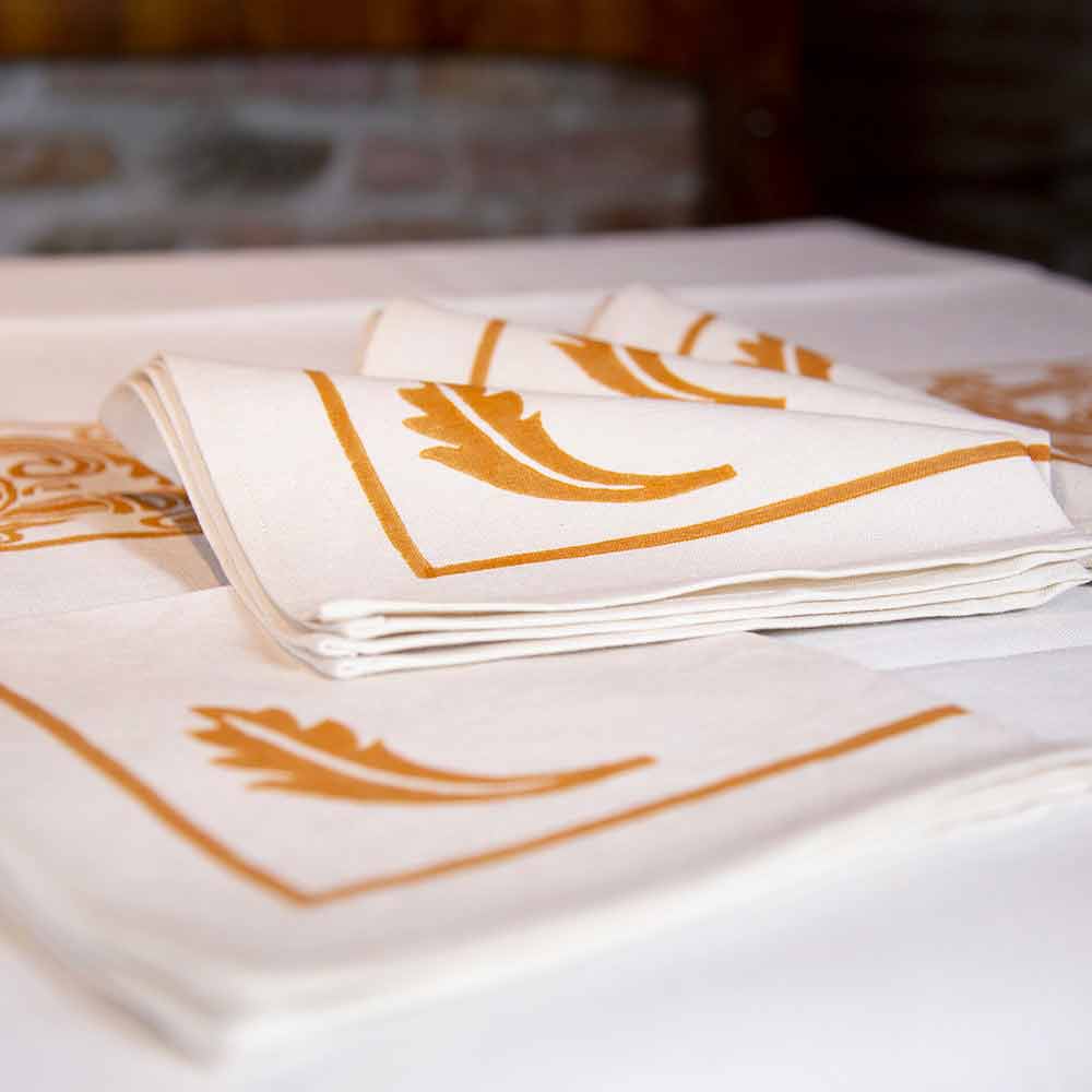 Napkin in Mixed Linen with Hand Print Unique Piece Made in Italy, 6 pieces