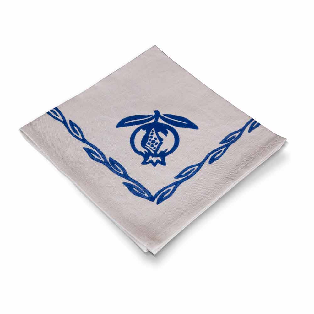 Napkin of high Italian craftsmanship in linen and cotton, made with ancient manufacturing technique with artistic hand print on fine fabrics, rust or blue design, unique piece.