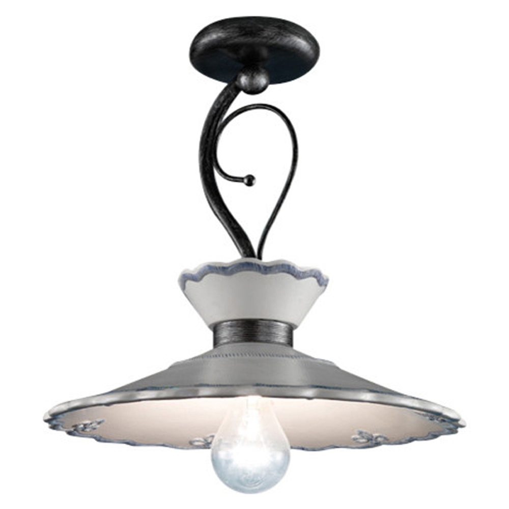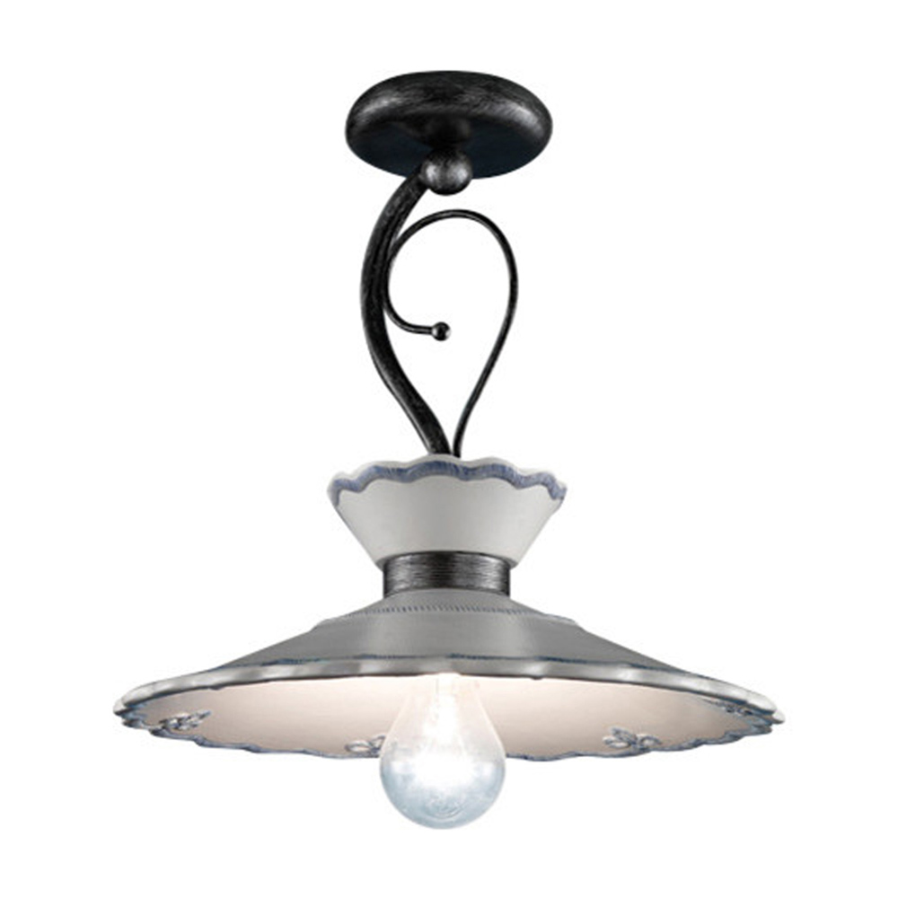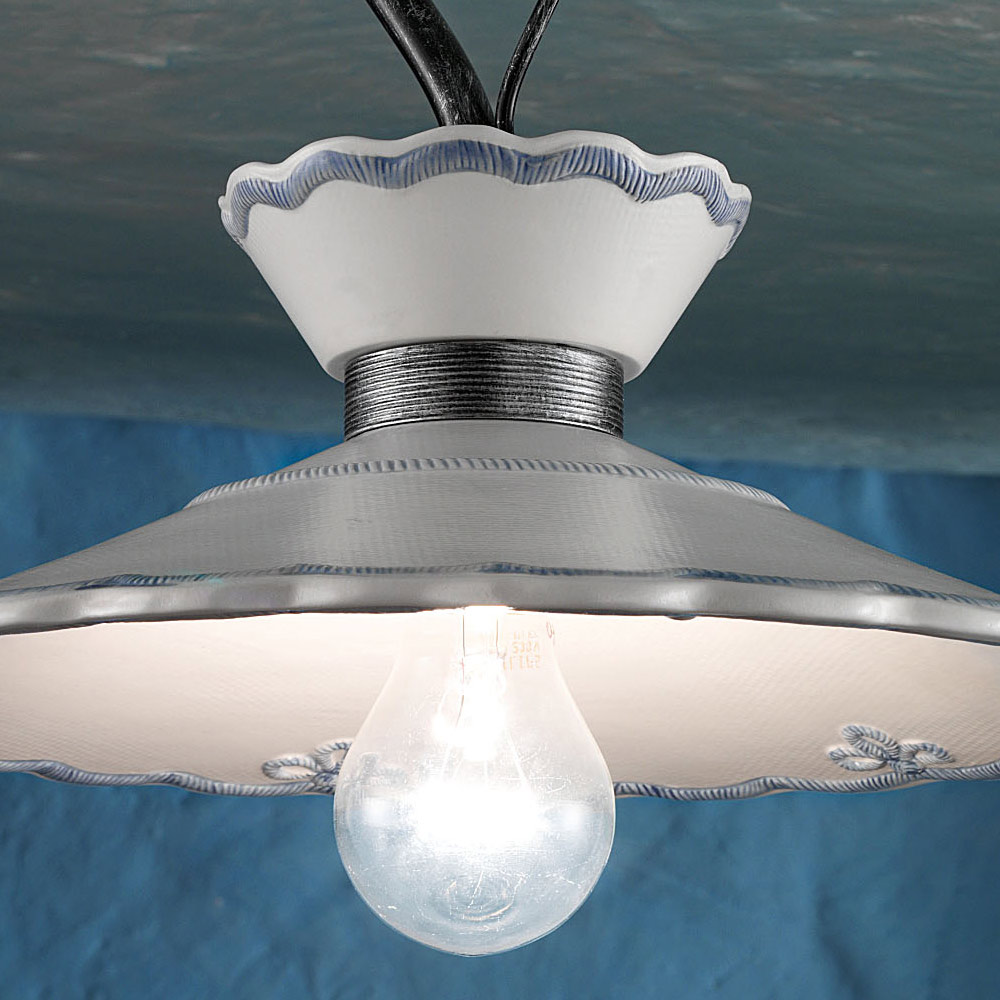 Handcrafted ceiling lamp in metal and ceramic with embroidery effect, 2 sizes made in Italy by Ferroluce.