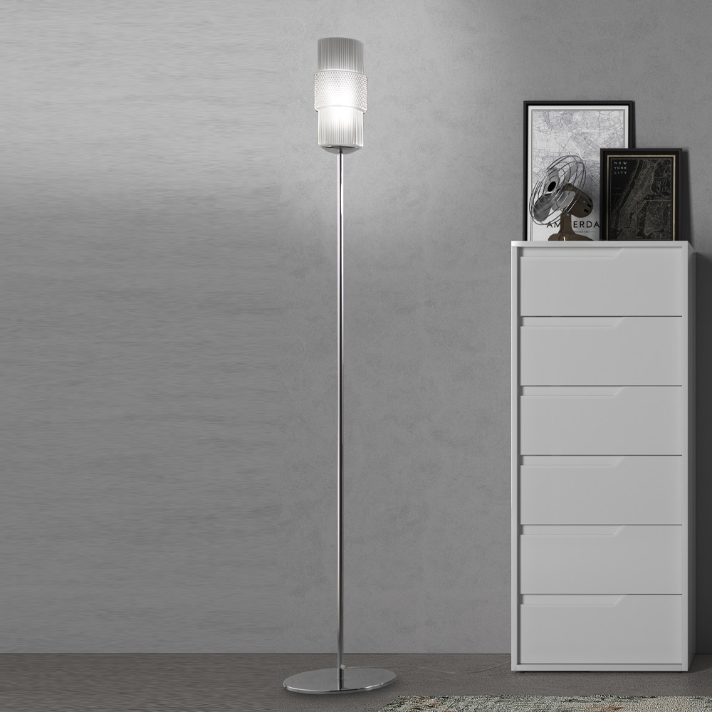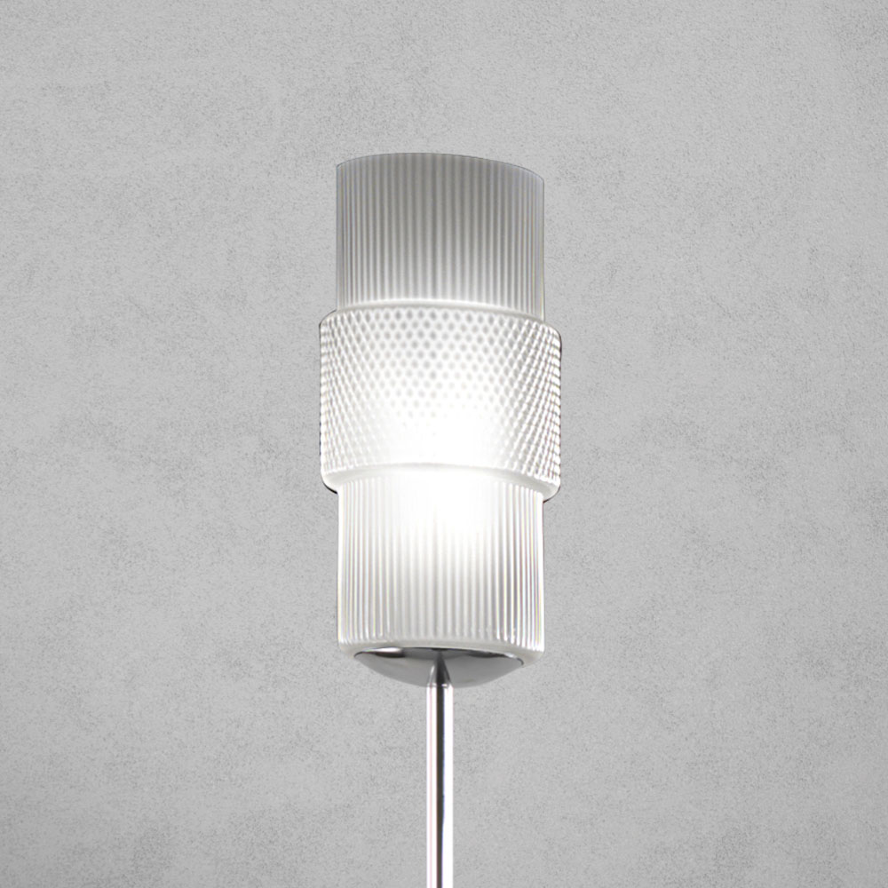 Handcrafted floor lamp in hand-blown Venice glass and chromed metal.