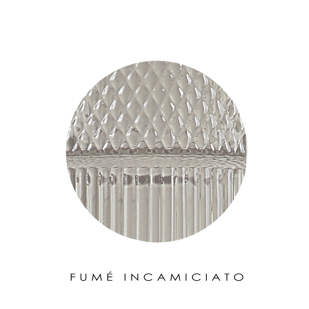 Rigata processing: processing technique that involves the use of a mold with small lines and rhombus engraving into which the glass is blown to create a wonderful visual and tactile effect.