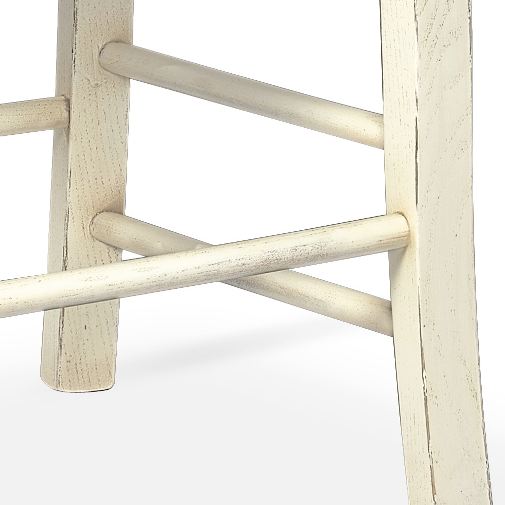 Dining chair with ivory pickled lacquered ash structure and straw seat .
