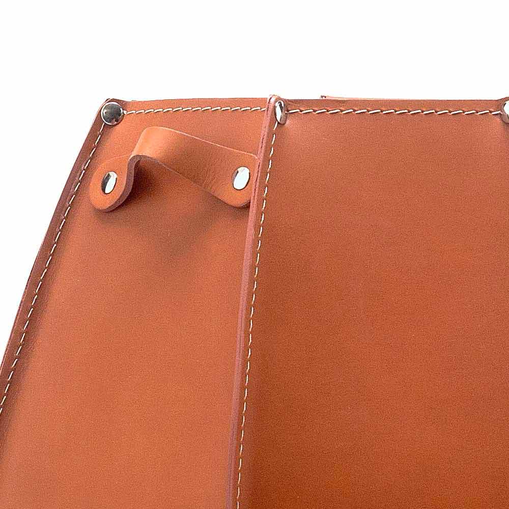 È made of regenerated leather, both internally and externally, with a plywood bottom, also covered in leather. Inside it features a plastic drip tray.