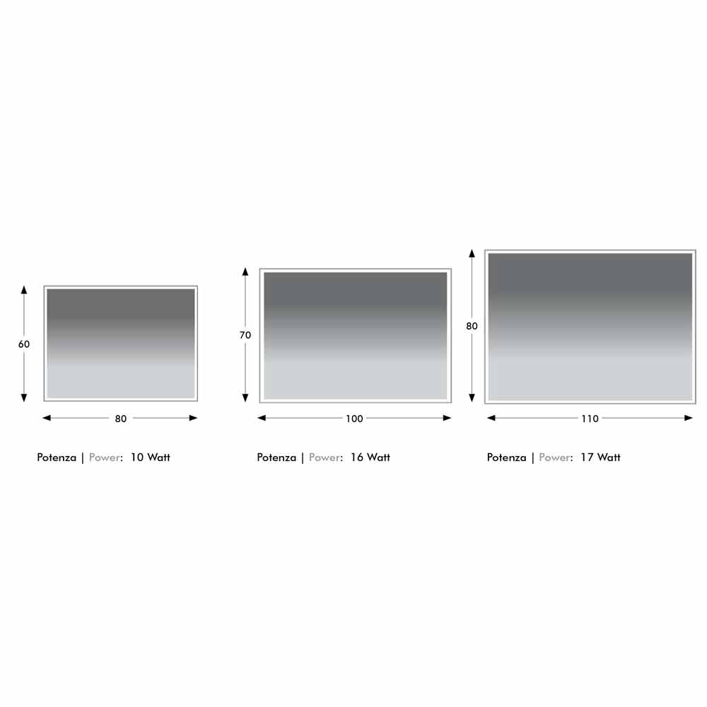 - L 80 x P 3 x H 60 cm (10W);