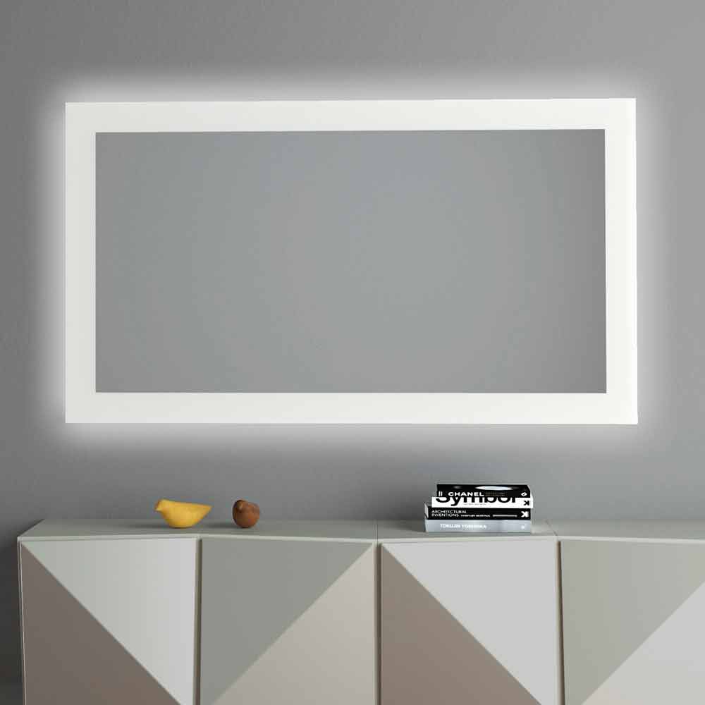 Rectangular backlit wall mirror with sandblasted frame Made in Italy.