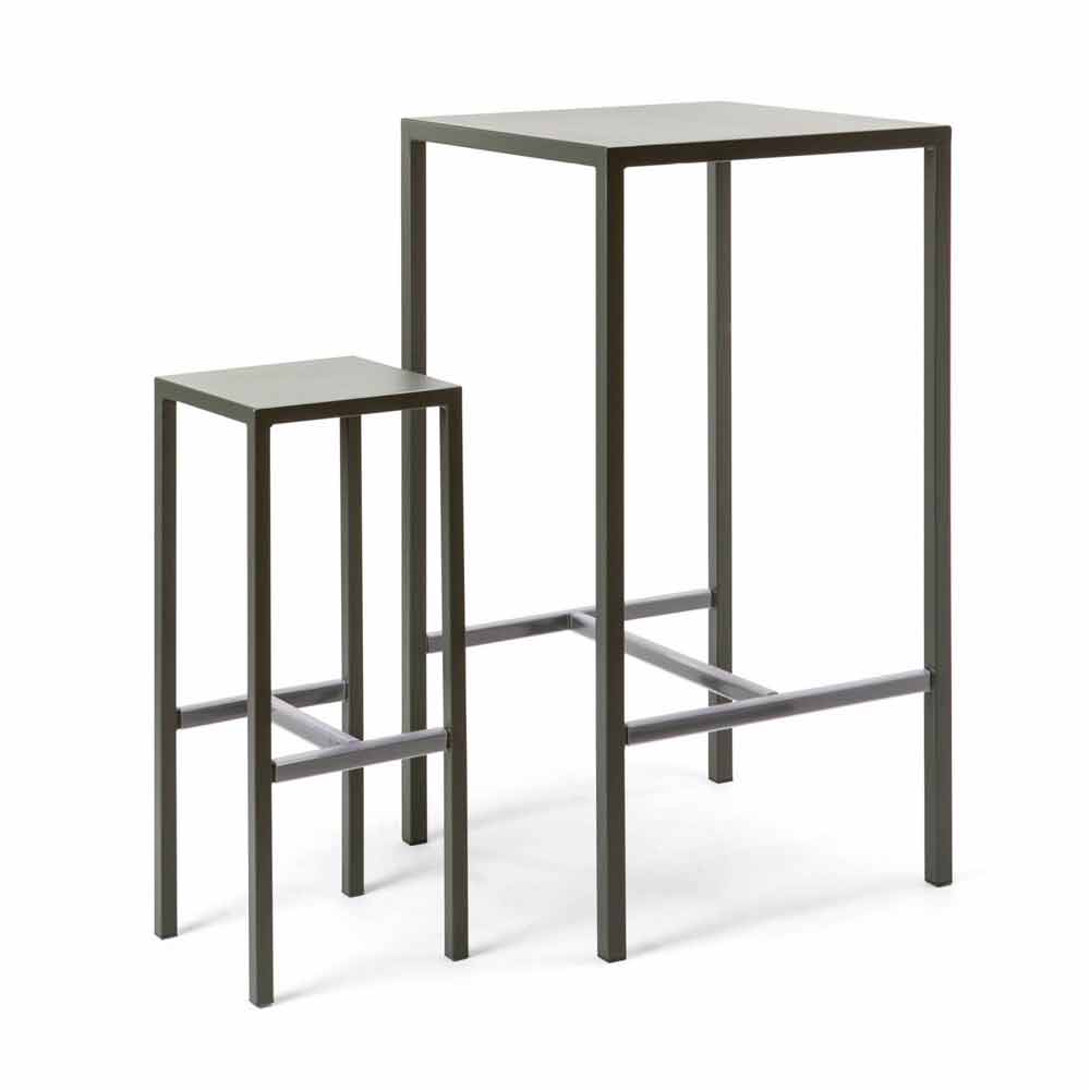 Modern bar table with 4 stools entirely made of powder-coated galvanized iron painted Made in Italy.