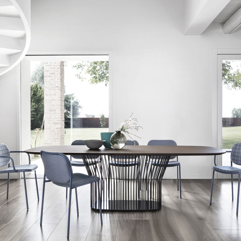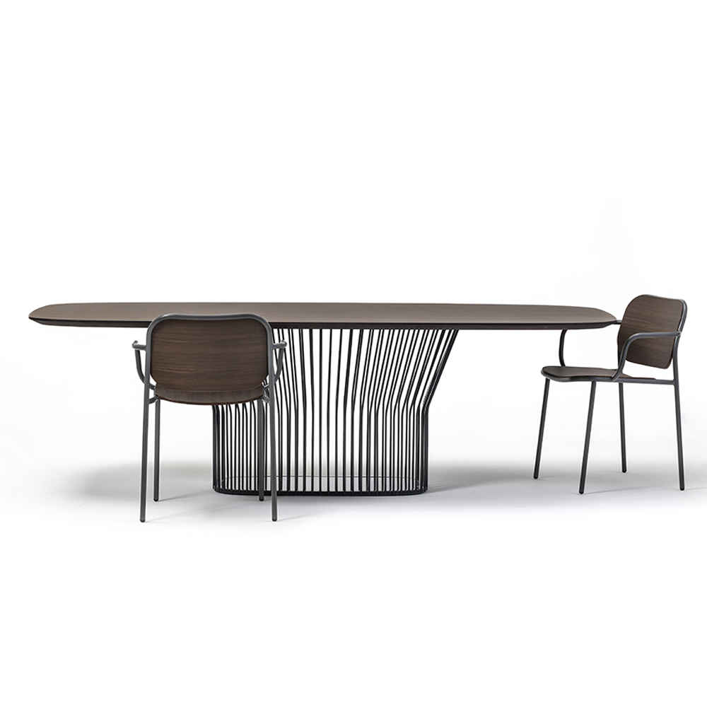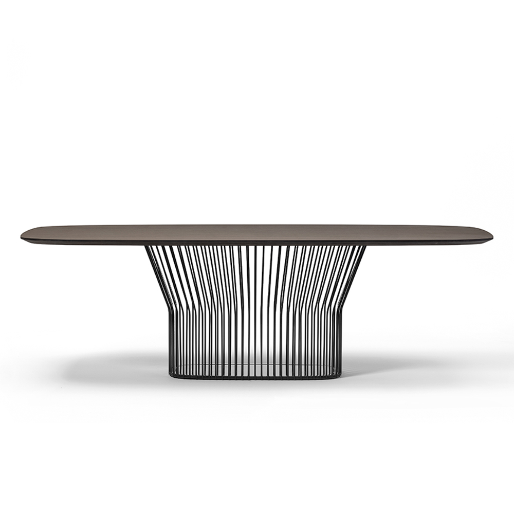 dynamic style and composed of many rays of different widths that fold outwards at the top and then open to support the top. The dimensions proposed together with the different finishes for the top allow this wonderful piece of furniture to prove to be particularly versatile and therefore able to complete any space, conquering the center of attention through its contemporary soul and its refined taste.