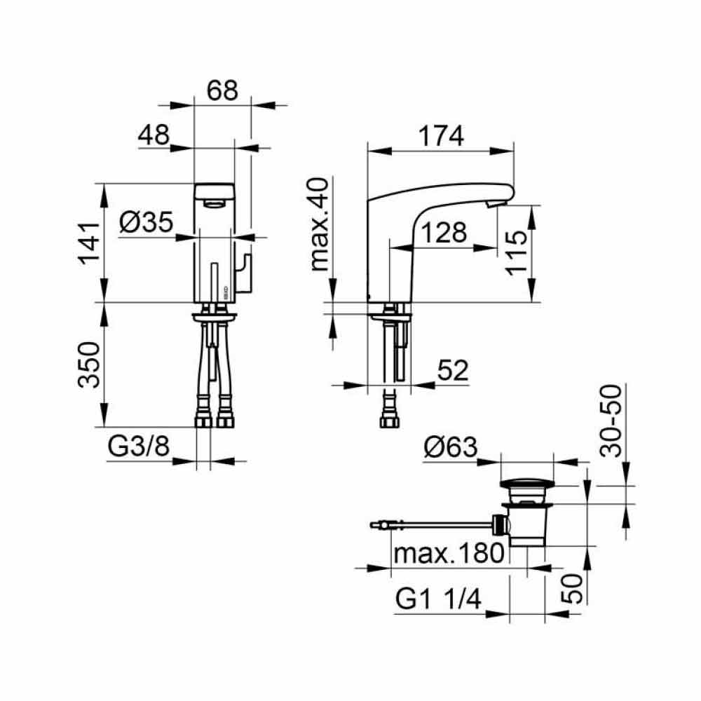 Modern bathroom sink tap made of brass with chrome finish and equipped with a practical infrared sensor .