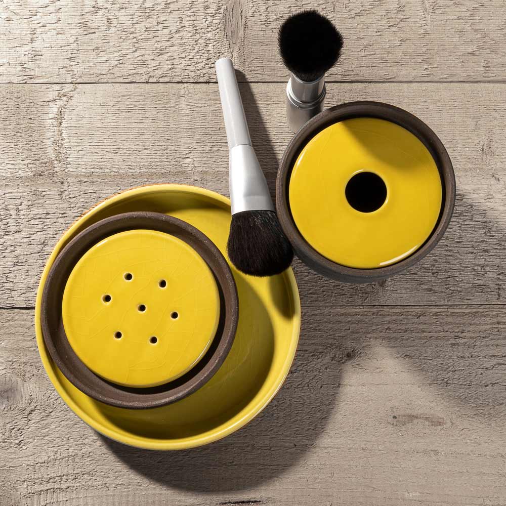 soap dish is made up of two parts which include the fireclay base and enameled saucer. The inside of the