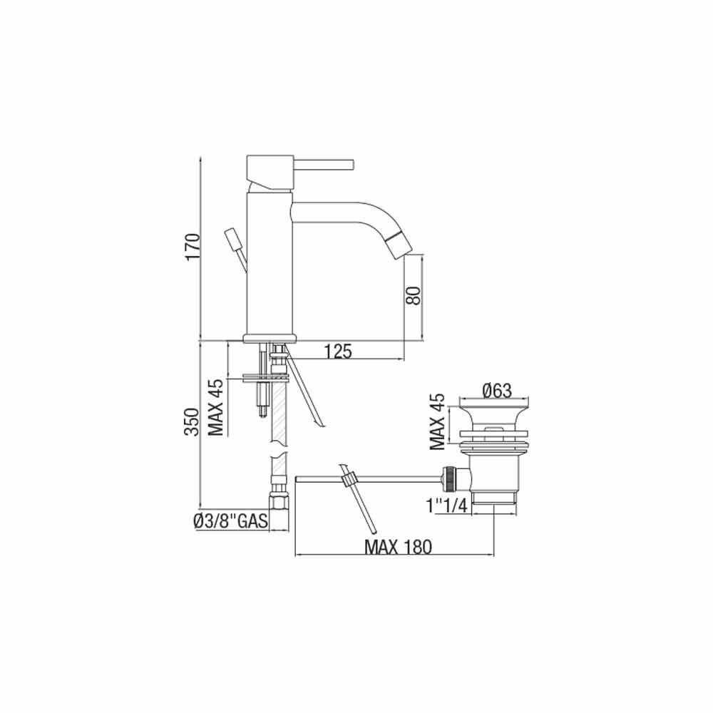 Made in Italy bathroom sink mixer in chromed brass complete with Ø 25 mm Kerox open cartridge. Available both in the version with and without drain, it is extremely versatile and capable of satisfying all needs in an impeccable way.