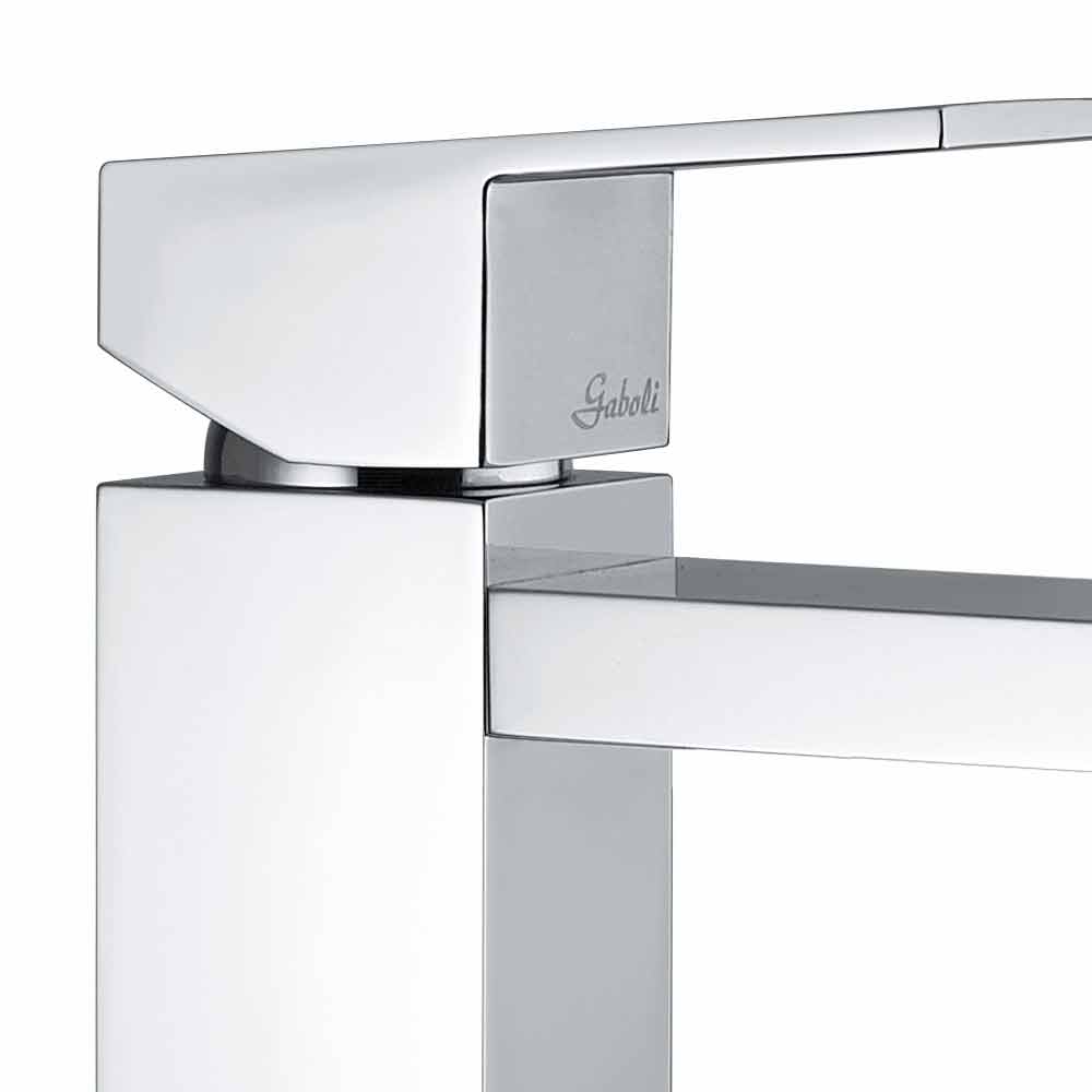 Chrome finish brass bathroom sink mixer with spout 170 mm center distance complete with Ø 25 mm Kerox open cartridge. Squared lines and well-defined angles give an extremely modern and refined touch to the product and to the entire room, enriching it with style and a completely new taste. Its simplicity and the wonderful chrome finish allow this tap to become part of any decor in an impeccable way, resulting discreet and elegant.