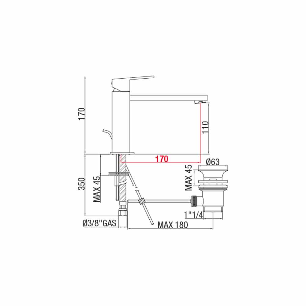 Modern bathroom sink mixer in chrome finish brass with Made in Italy drain.