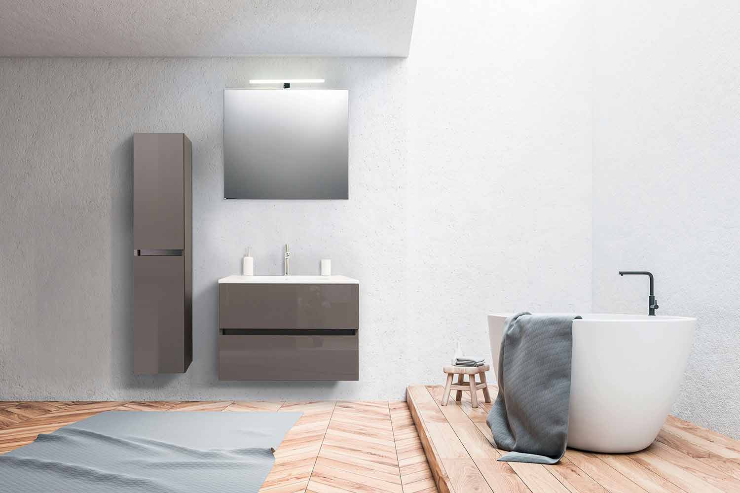 Bathroom Cabinet 80 cm, Wash Basin, Mirron and Ecru Column – Becky