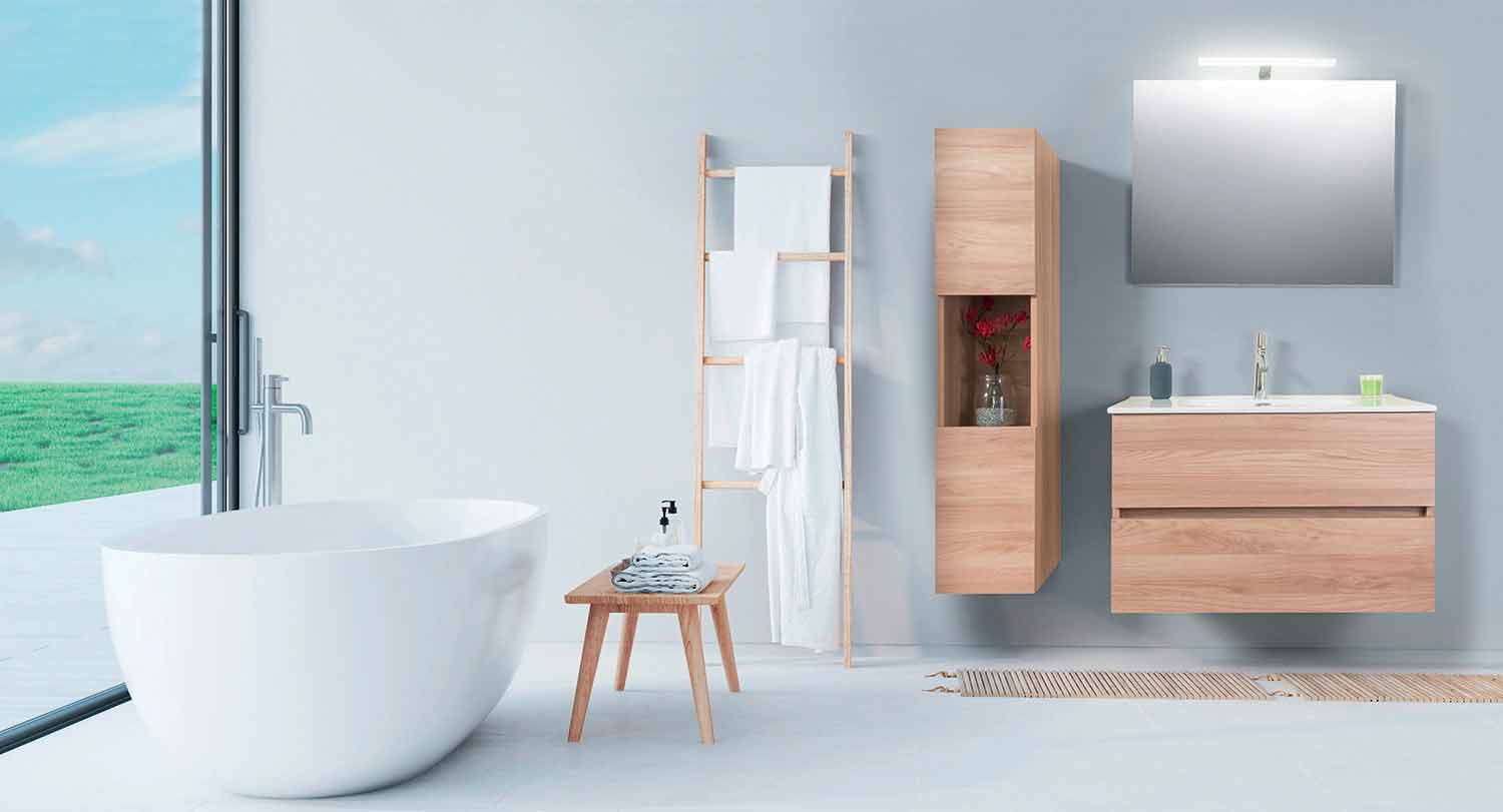 Bathroom Cabinet 90 cm, Wash Basin, Mirror and Column – Becky