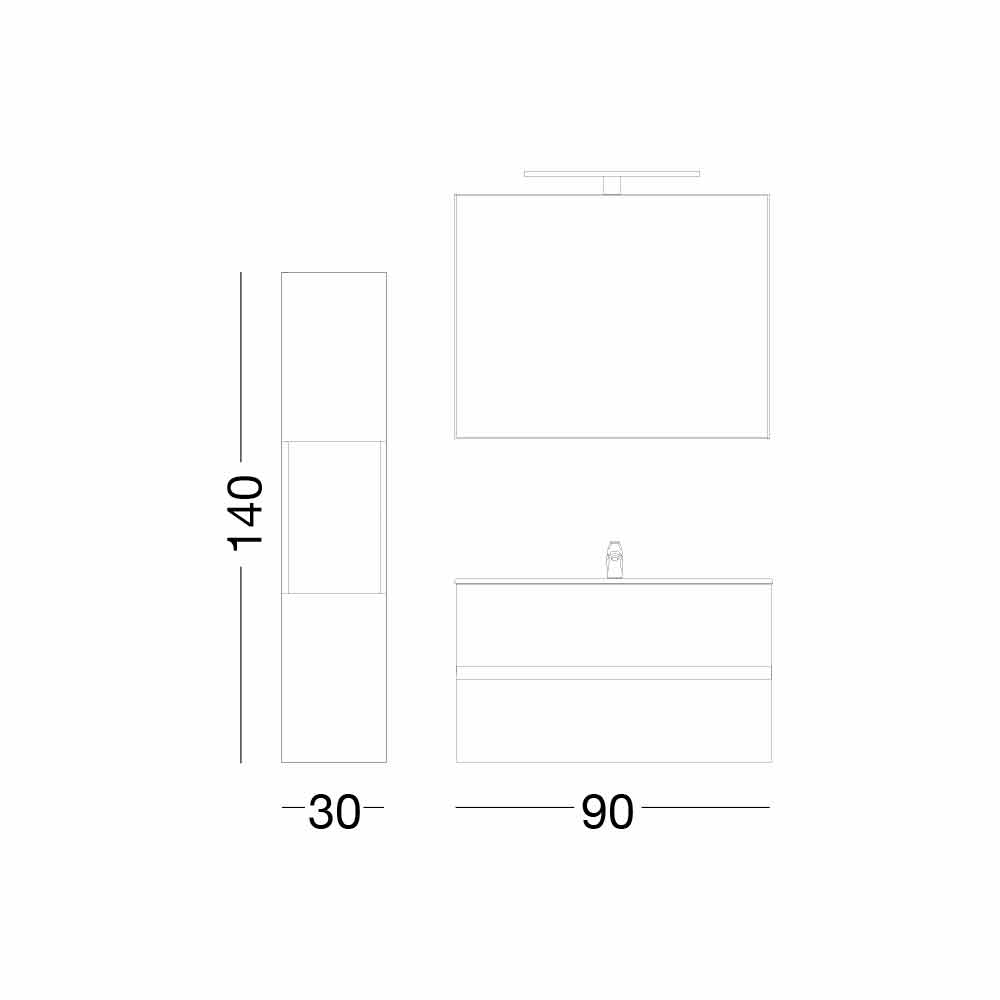 Measures Mobile base + lavabo: L 90 x P 46 x H 55 cm Colonna: L 30 x P 30 x H 140 cm